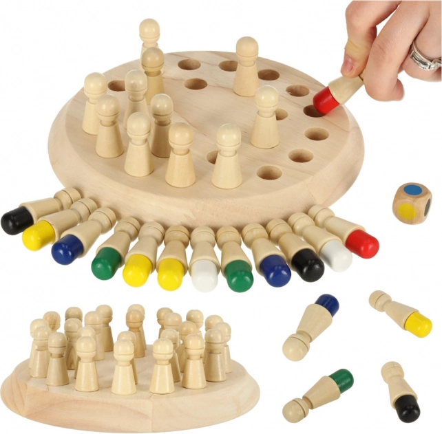 Atraskite linksmą medinį žaidimą, kuris lavina atmintį, dėmesį ir loginį mąstymą. Spalvoti kaišteliai, spalvų kauliukas ir kompaktiška apvali lentelė sukuria idealią šeimos veiklą. Pagaminta iš natūralaus medžio su saugiais vandens pagrindo dažais – puikiai tinka ir Montessori metodikos gerbėjams.