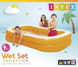 Stačiakampio formos Intex pripučiamas baseinas suteikia pakankamai vietos vaikams ir tėvams. Dėl kompaktiškų matmenų jis telpa daugumoje sodų ar terasų ir užtikrina greitą atvėsimą per kelias minutes. Patvarios medžiagos ir stabilios kameros garantuoja patogų ir saugų maudymąsi.