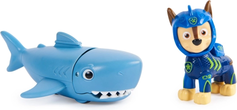Chase figūrėlė apsirengusi nauju neopreniniu kostiumu, kad būtų pasiruošusi bet kokiai povandeninei gelbėjimo akcijai. Vaikai gali pritvirtinti Chase ant jo draugo ryklio nugaros ir paprastu judesiu į priekį aktyvuoti kandimo mechanizmą. Autentiškos detalės ir serialo „Šunyčių patrulis“ įkvėptas dizainas leidžia vaikams valandų valandas smagiai žaisti ir kurti kūrybiškas gelbėjimo misijas.
