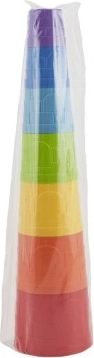 Ši spalvinga sulankstoma piramidė suteikia vaikams daug pramogų ir mokymosi viename. Septynis skirtingų dydžių plastikinius puodelius galima lengvai statyti į aukštą bokštą arba sudėti vieną į kitą – tai lavina logiką, kantrybę ir smulkiąją motoriką.
