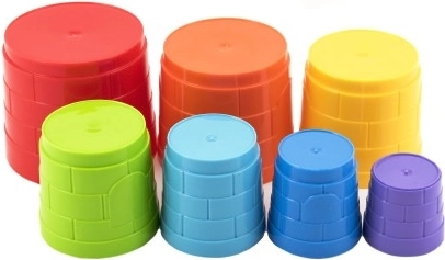 Dėl atsparaus plastiko žaislas puikiai tinka ne tik vaikų kambaryje, bet ir smėlio dėžėje ar vonioje. Žaismingos spalvos skatina spalvų skyrimą ir dydžių supratimą.