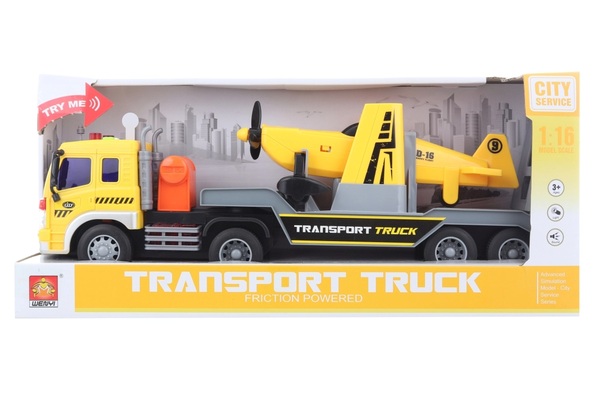 Linksmas rinkinys mažiesiems vairuotojams ir pilotams: baterijomis maitinamas sunkvežimis su lėktuvu suteikia šviesos efektus ir realius garsus, paspaudus mygtukus. Idealiai tinka vaikams nuo 3 metų, lavina vaizduotę ir motoriką.