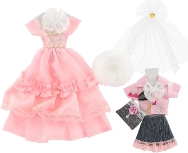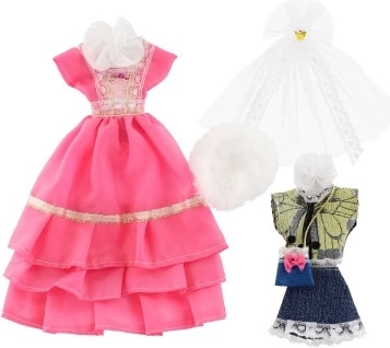 Paverskite savo lėlę mados ikona su mūsų drabužėlių rinkiniu. Jame yra du nuostabių suknelių tipai su elegantiškomis nėrinių detalėmis, papildyti praktiškais aksesuarais įvairioms progoms. Puikus pasirinkimas visoms mažosioms mados kūrėjoms!