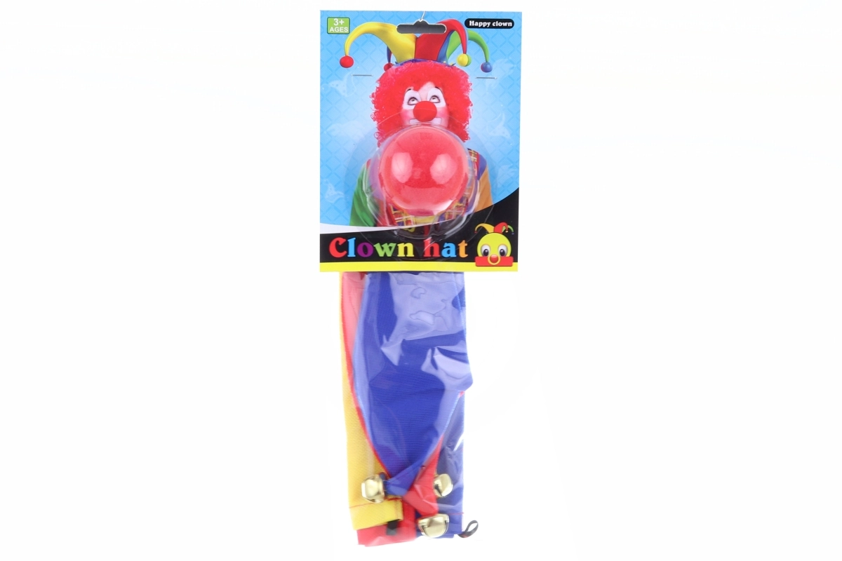 Šis spalvingas rinkinys akimirksniu pavers kiekvieną mielu klaunu. Minkšta audinio kepurė ryškiomis spalvomis su metaliniais varpeliais suteikia kostiumui žaismingą garso efektą, o raudona putplasčio nosis lengvai užsideda ir patogiai laikosi.