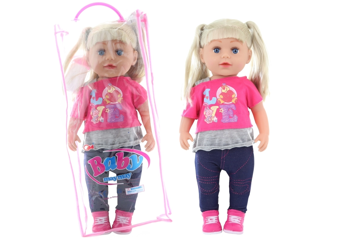 Miela 45 cm aukščio blondinė lėlė pradžiugins kiekvieną mažą globėją. Ji turi kietą plastikinį kūnelį, lenkiamas (sąnarines) kojas, kad būtų lengva sodinti ir statyti, ir vilki rožinį–pilką drabužėlį su lipuku patogiam persirengimui. Rinkinyje yra ir buteliukas, kuris skatina žaisti tėvus ir vaikus.