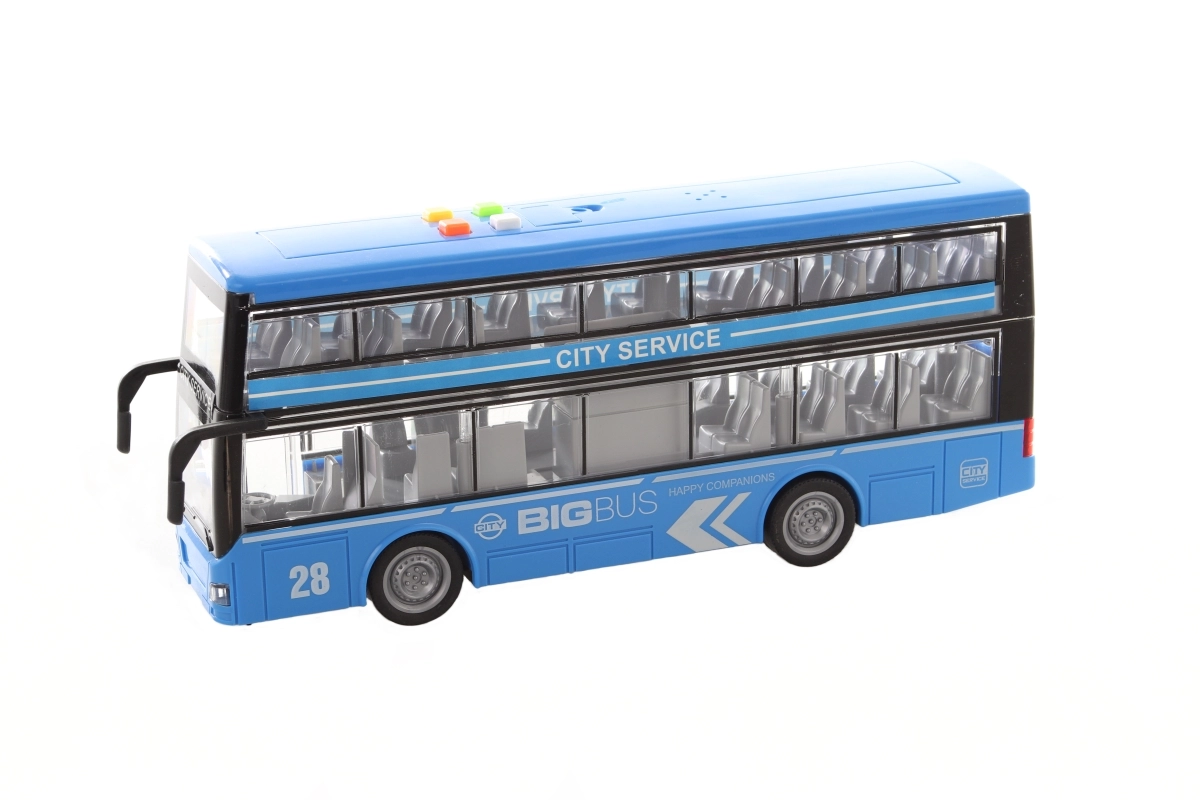 Šis mėlynas dviaukštis autobusas su baterijomis pradžiugins visus mažus transporto priemonių gerbėjus. Dėl realistiškų garsų žaidimas tampa dar smagesnis ir skatina vaizduotę. Tvirtas plastikinis korpusas puikiai tinka kasdieniams žaidimams.