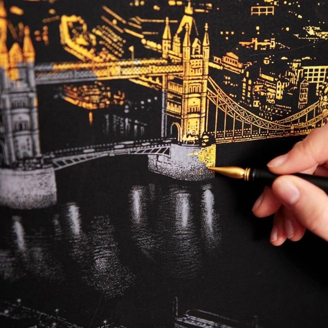 Atraskite gramdymo technikos žavesį: po juodu sluoksniu slypi auksinis pagrindas, kuris iš kiekvieno nugramdyto brūkšnio sukuria kontrastingą, elegantišką efektą. Ikoninės Sidnėjaus operos motyvas naktiniame vaizde pradžiugins ir pradedančiuosius, ir pažengusius, o galutinis paveikslėlis taps originalia dekoracija.