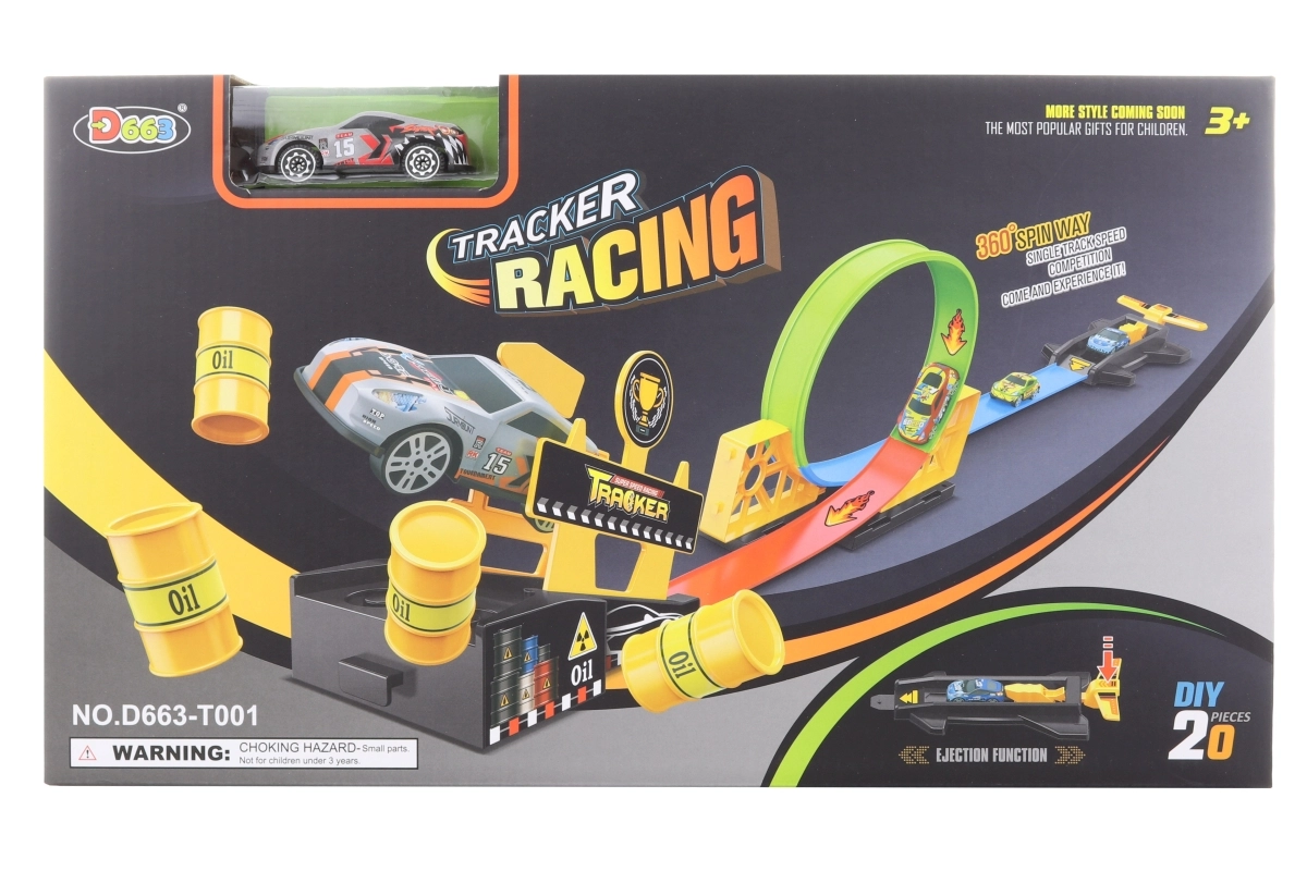 Ši paleidžiama trasa idealiai tinka mažiesiems greičio mėgėjams. Paprastai paleistas automobiliukas nurieda trasa ir dovanoja įtraukiančią, linksmą kelionę. Kompaktiška pakuotė palengvina laikymą ir nešiojimą.