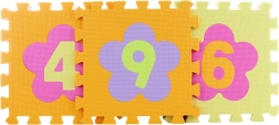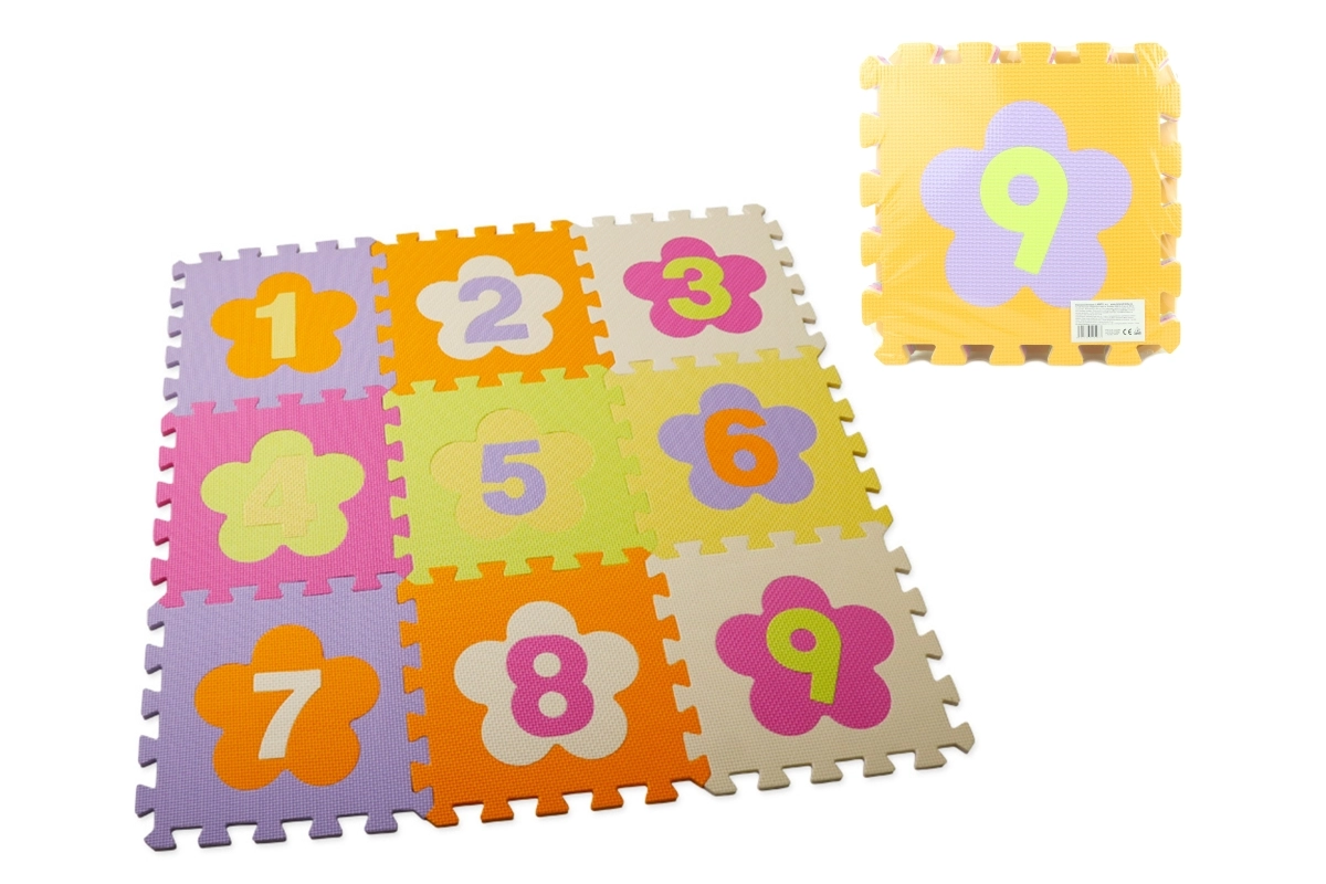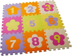 Spalvinga putų dėlionė su skaitmenimis ir išimamais elementais sukuria minkštą ir saugų žaidimų kilimėlį vaikams nuo 3 metų. 28 × 28 cm dydžio dalys lengvai jungiasi, turi raukšlėtą neslystantį paviršių, yra plaunamos, slopina triukšmą ir izoliuoja nuo šalčio. Pakuotėje yra 9 kvadratinės dalys.