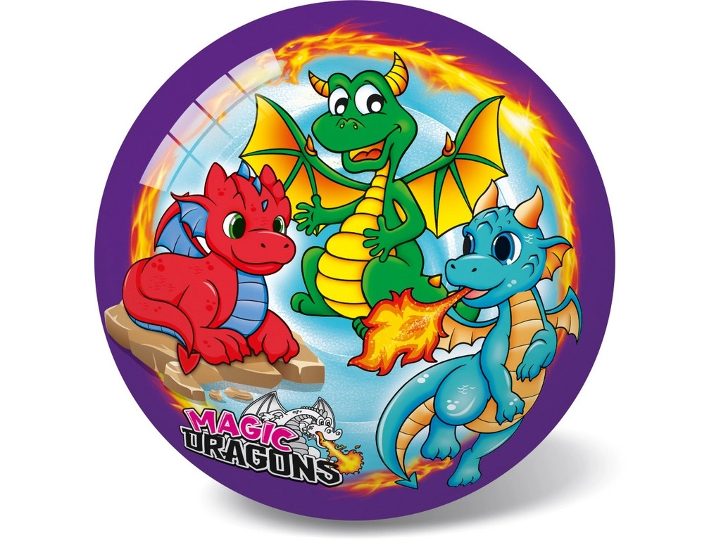 Šis spalvingas kamuolys su linksmomis drakoniukų iliustracijomis suteikia vaikams daug judesio ir pramogų. 23 cm skersmuo patogus mažoms rankoms, todėl kamuolys puikiai tinka žaidimams sode, žaidimų aikštelėje ar patalpose. Blizgus paviršius lengvai valomas, tad kamuolys ilgai atrodo kaip naujas.
