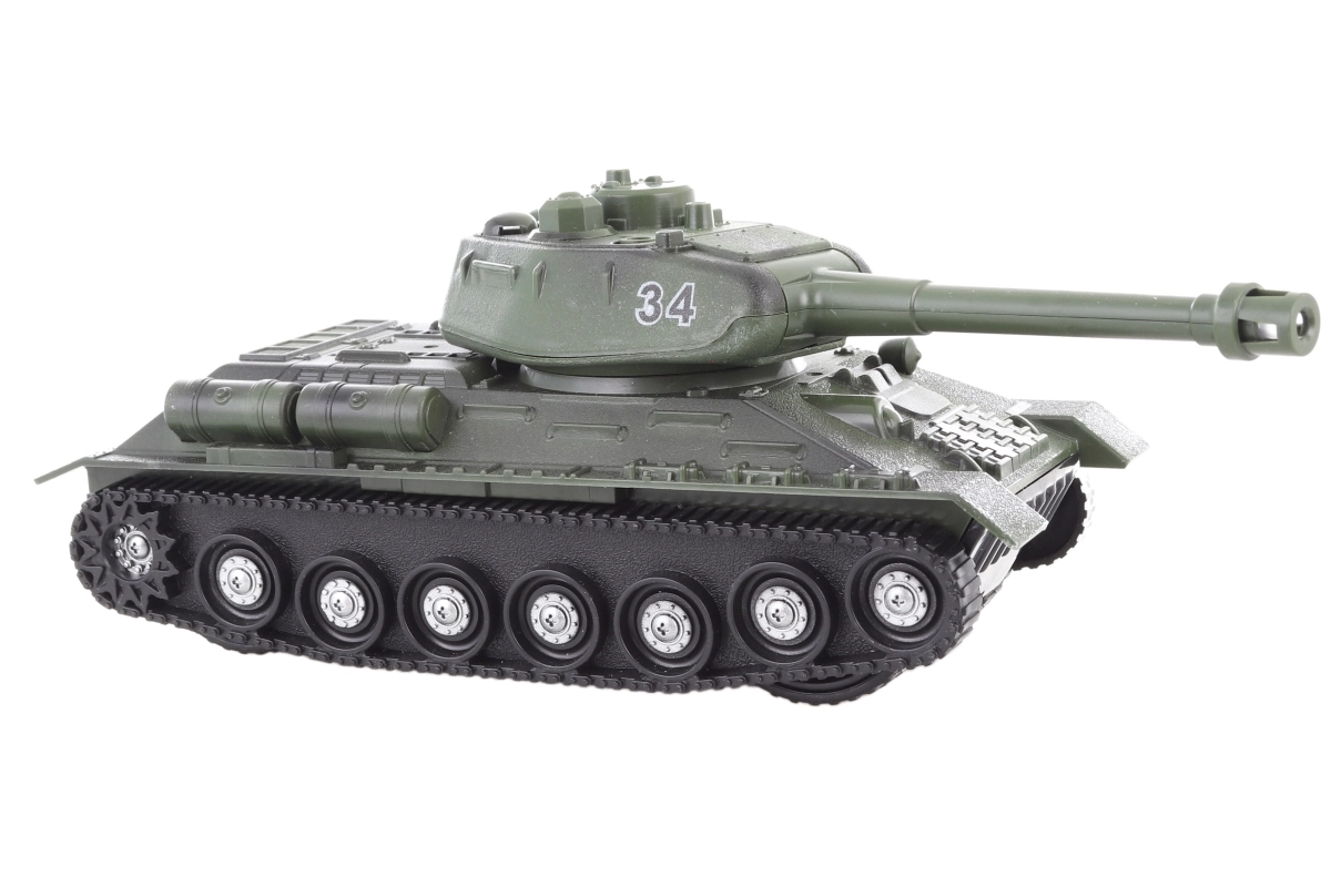 Mėgaukitės įtemptais mūšiais su realistišku žaliu tanku 1:32 masteliu. Dėl inercinės pavaros pastūmus tankas sklandžiai pajuda, o besisukantis bokštelis ir detaliai atliktas važiuoklės vikšrų modelis žadina fantaziją ir užtikrina ilgas žaidimo valandas.