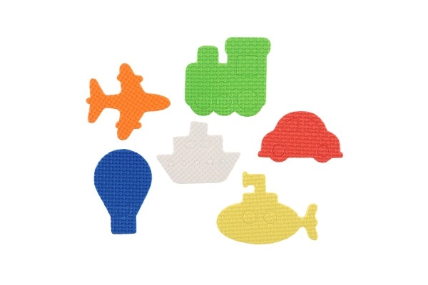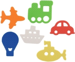 Atraskite transporto pasaulį tiesiog vonioje. Ši linksma rinkinio sudėtis: lėktuvas, traukinys, laivas, automobilis, oro balionas ir povandeninis laivas. Putplasčio detalės plūduriuoja vandens paviršiuje, sudrėkintos prilimpa prie lygių paviršių, o ryškios spalvos skatina kūrybišką žaidimą.