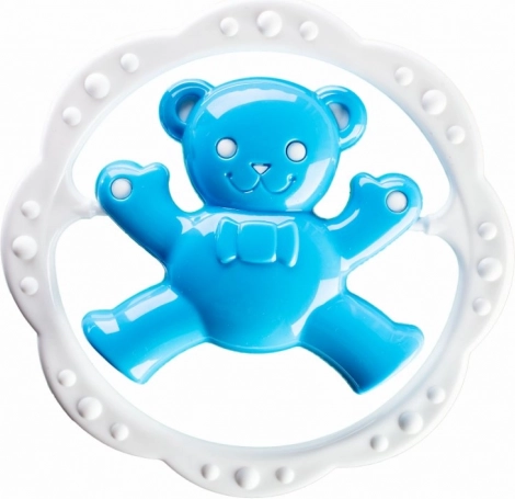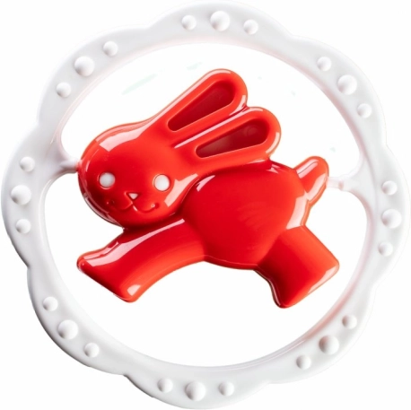 Tekstūruotas žiedas švelniai masažuoja dantenas ir padeda nuraminti kūdikį pirmųjų dantukų dygimo laikotarpiu.