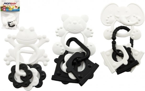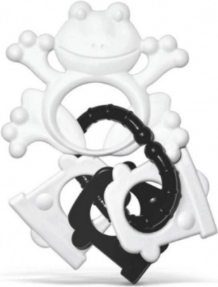 Palengvinkite kūdikiui dantukų dygimą su gyvūnėlių formos kramtuku, kuris derina įvairias formas ir tekstūras švelniai dantenų masažui. Kontrastingas juodai baltas dizainas sudomina net naujagimius ir skatina regos vystymąsi.