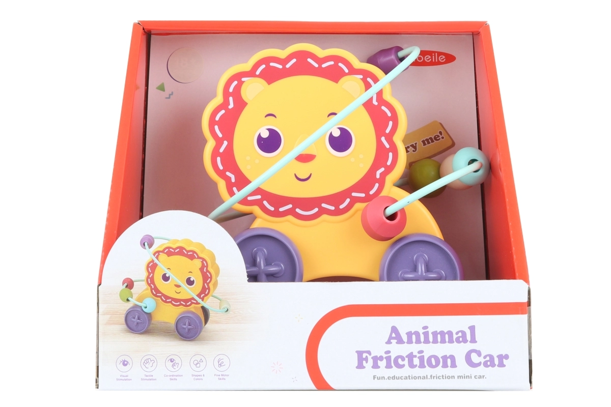 Mielas liūtas slepia viduje spalvingą labirintą su karoliukais, kuriuos vaikai stumdo vielelėmis. Žaislas yra lengvas, stabilus, o dėl ratukų vaikai gali jį lengvai pervežti. Puikus pasirinkimas pirmajam įgūdžių lavinimo žaislui patiems mažiausiems nuo 18 mėnesių.