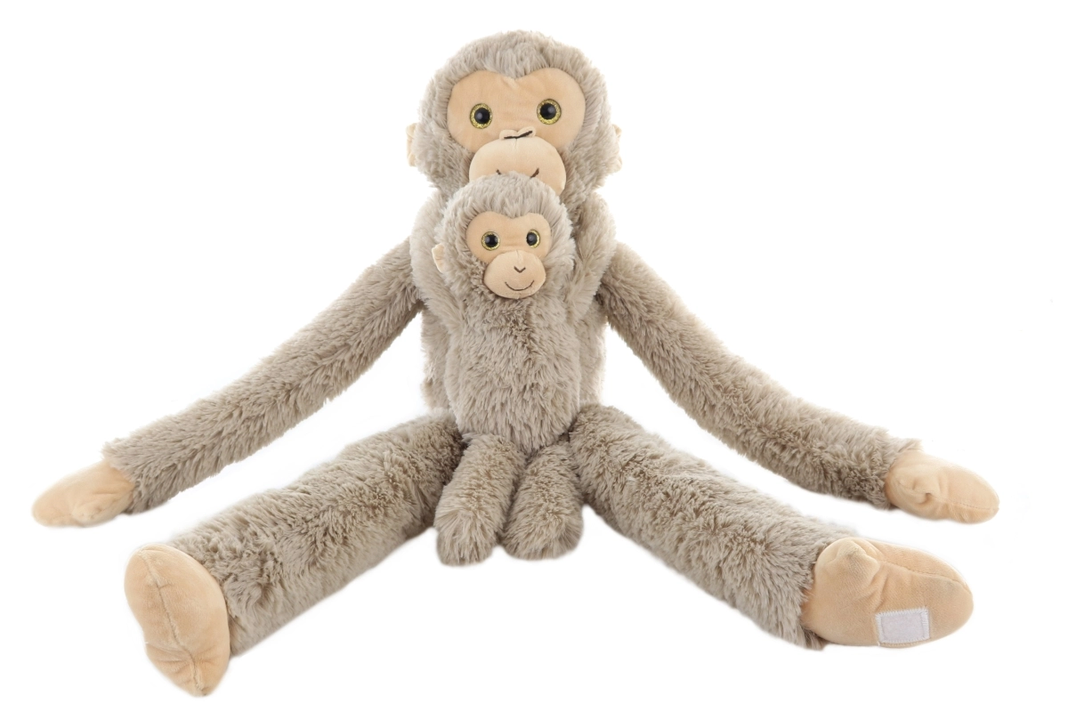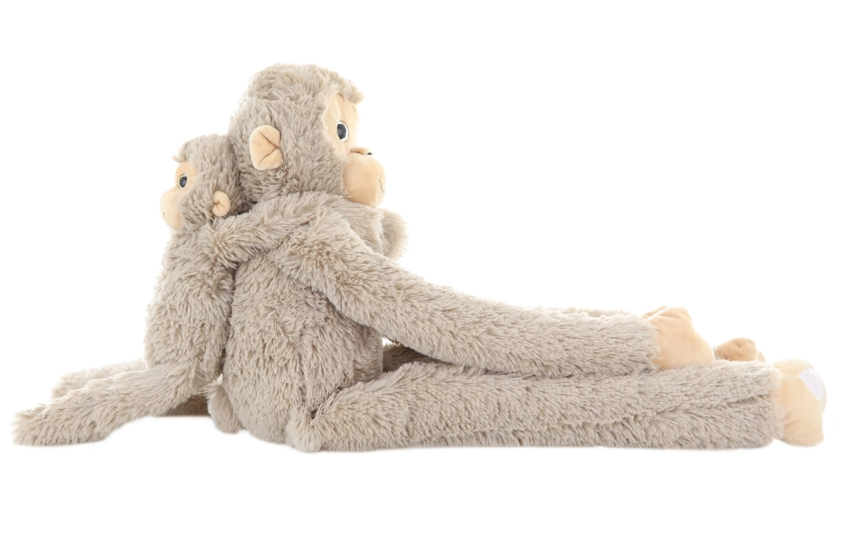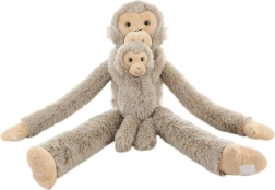 Ši švelni plišinė beždžionė su jaunikliu užkariaus kiekvieno mažojo gyvūnų mylėtojo širdį. Ilgos, lanksčios rankos su lipukais leidžia beždžionei prisiglausti prie vaiko ar būti pakabintai, o atskiriamas jauniklis lavina vaidmenų žaidimus ir smulkiąją motoriką.