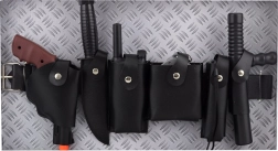 - Odinis diržas (apie 43 cm), pistoletas, peilis, racija, antrankiai, žibintuvėlis su baterijomis, lazda