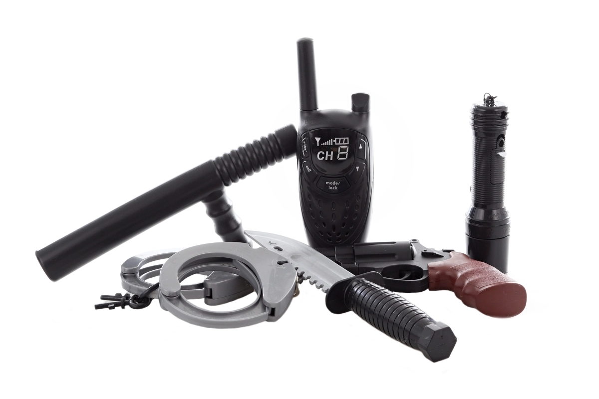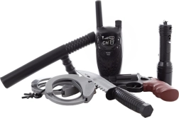 Praktiškas žibintuvėlis su baterijomis suteikia daugiau pramogų ir esant prastesniam apšvietimui, o racija padeda bendrauti žaidimo metu. Pistoletas, antrankiai ir lazda papildo autentišką policininko patirtį. Baterijos yra pakuotėje, todėl nieko papildomai pirkti nereikia.