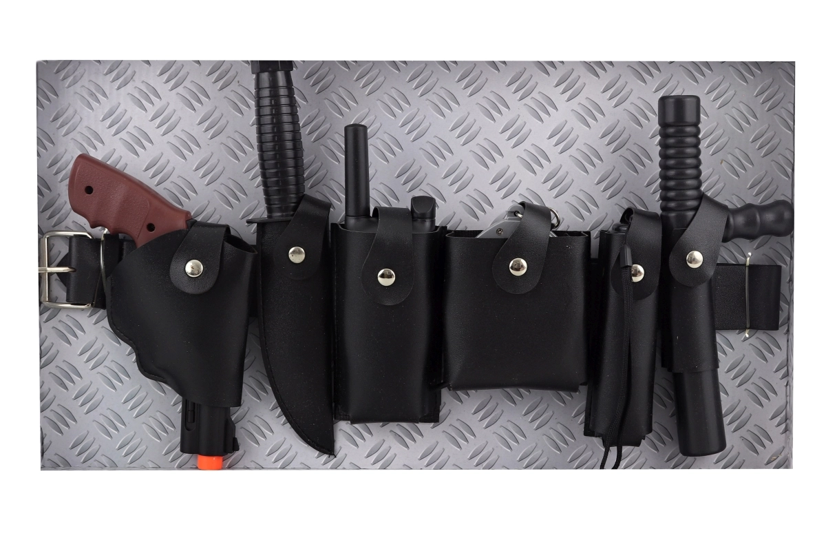 Šis realistiškas policijos rinkinys su odiniu diržu – puiki dovana mažiesiems herojams. Vaikai mėgausis kūrybišku vaidmenų žaidimu, lavins vaizduotę ir kurs savo istorijas. Dėl gausios įrangos ir lengvo priedų tvirtinimo prie diržo viskas visada po ranka.