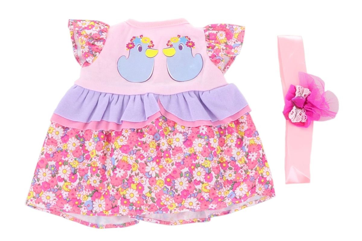 Įkvėpkite mėgstamai lėlei naujo stiliaus. Šios suknelės skirtos 40–45 cm dydžio lėlėms ir žavi mielomis detalėmis, tokiomis kaip raukiniai, kaspinėliai ir žavingi atspaudai. Dėl patogaus kirpimo ir lengvo užsegimo perrengti sugebės net mažesni vaikai.
