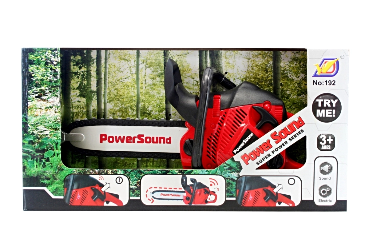 Šis plastikinis vaikiškas grandininis pjūklas ištikimai atkuria tikro įrankio išvaizdą ir garsus, tačiau yra visiškai pritaikytas vaikų rankoms. Dėl dviejų mygtukų vaikai lengvai „užveda“ „variklį“, įjungia garso efektus ir suka saugią, imituojamą grandinę.