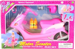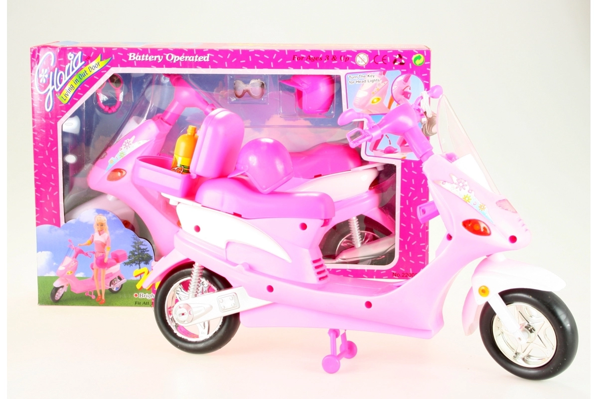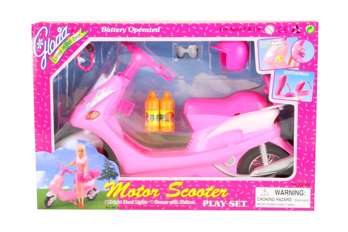 Priekiniai motorolerio žibintai įsijungia pasukus raktelį, taip suteikdami dar daugiau autentiškumo. Leiskitės į nuotykius su lėlėmis, pasitelkdami galinį bagažinį su atidaromu dangteliu smulkmenoms laikyti. Rinkinyje taip pat rasite stilingus akinius, šalmą ir du plastikinius buteliukus, kad jūsų lėlės visada būtų pasiruošusios kelionei.