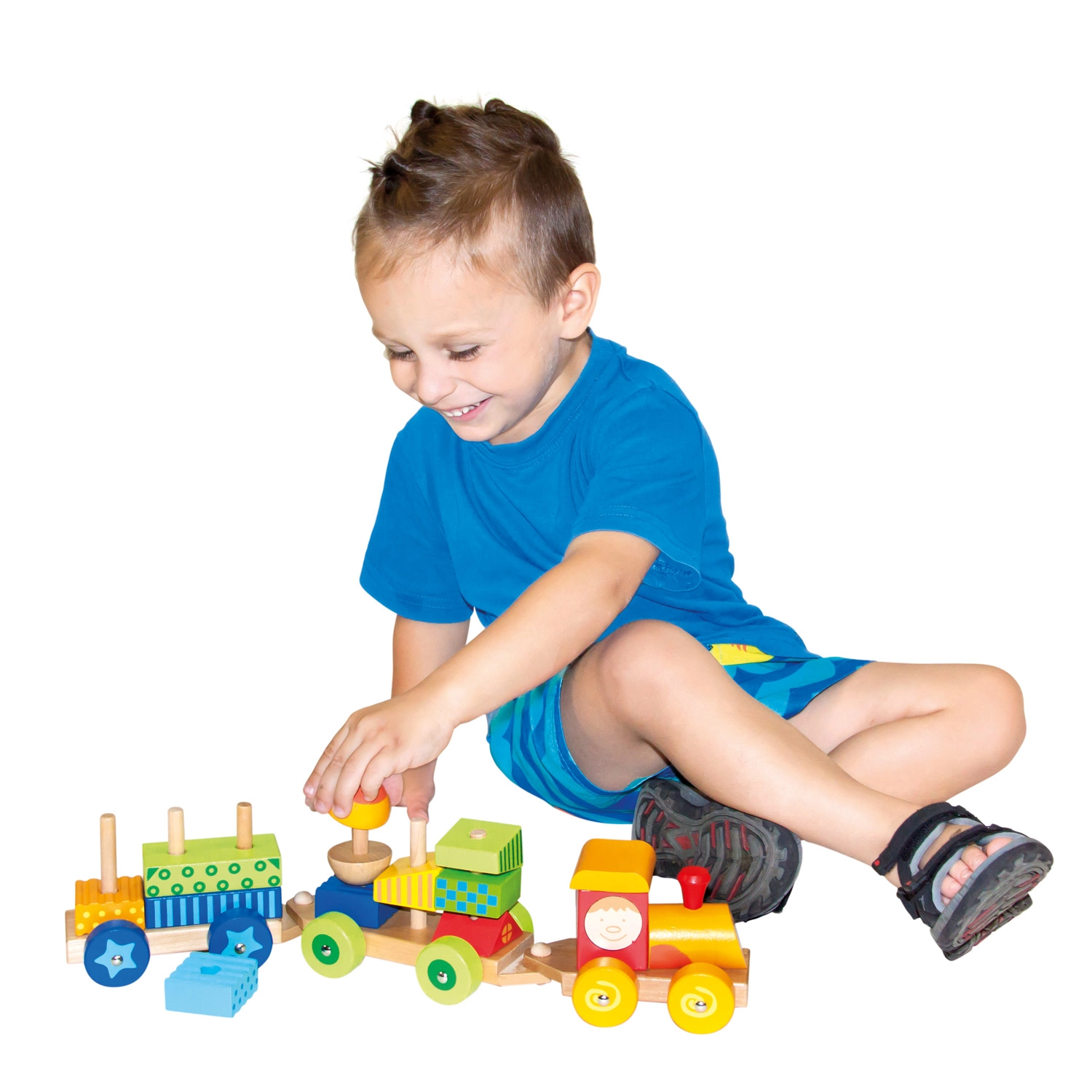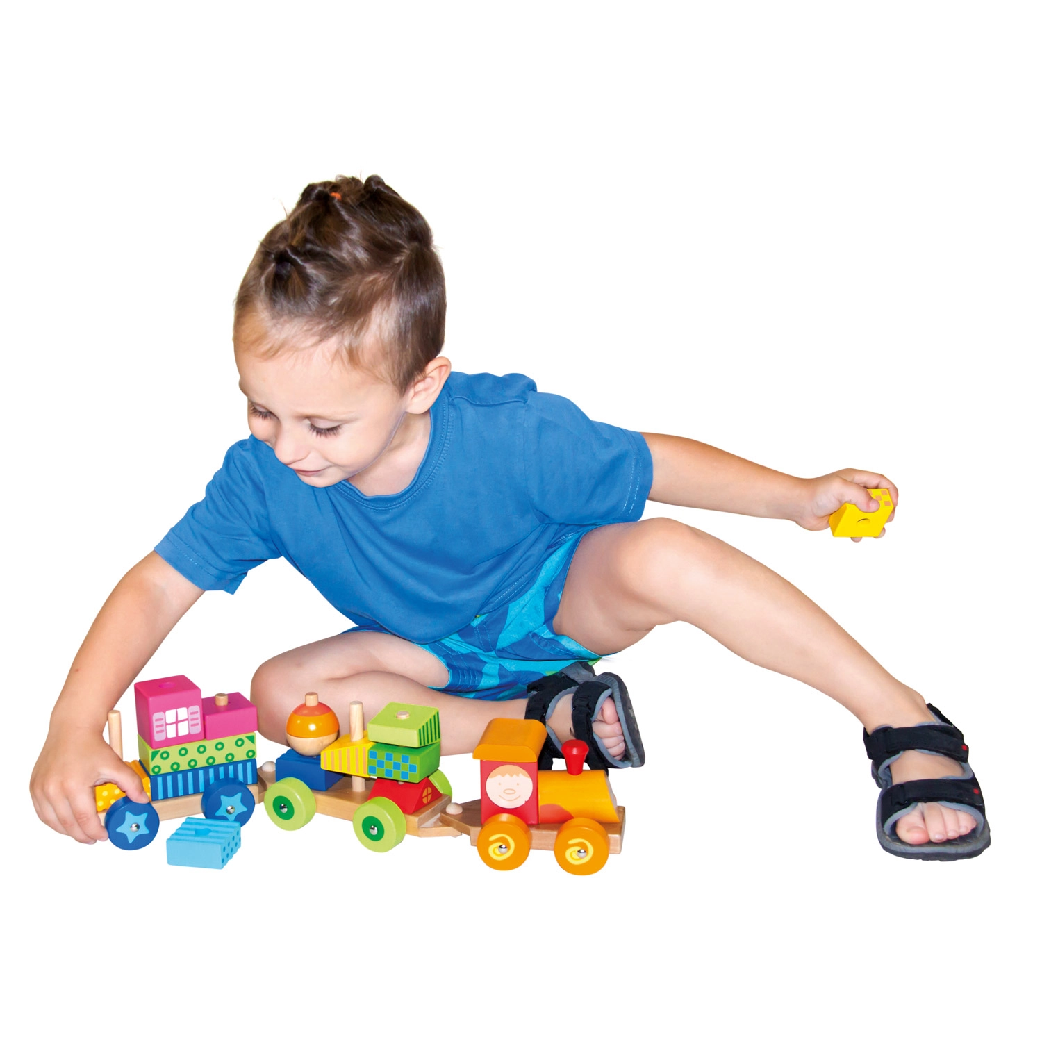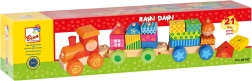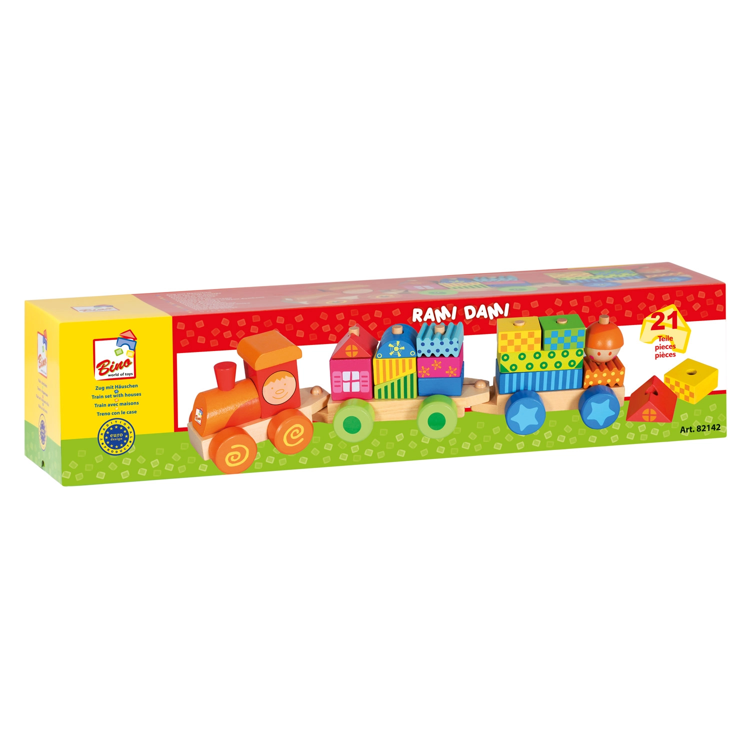 Bino medinis traukinukas su linksmomis spalvomis yra smagus tempiamas žaislas ir konstruktorius viename. Jis lavina vaikų vaizduotę ir miklumą statant vagonėlius su įvairių formų kaladėlių kroviniu. Pagamintas iš patvarios masyvios medienos.