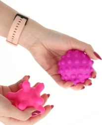 Kamuoliukai tinkami žaisti tiek sausumoje, tiek vandenyje. Tekstūros puikiai tinka švelniam delnų ir pėdų masažui ir suteikia ramybės.