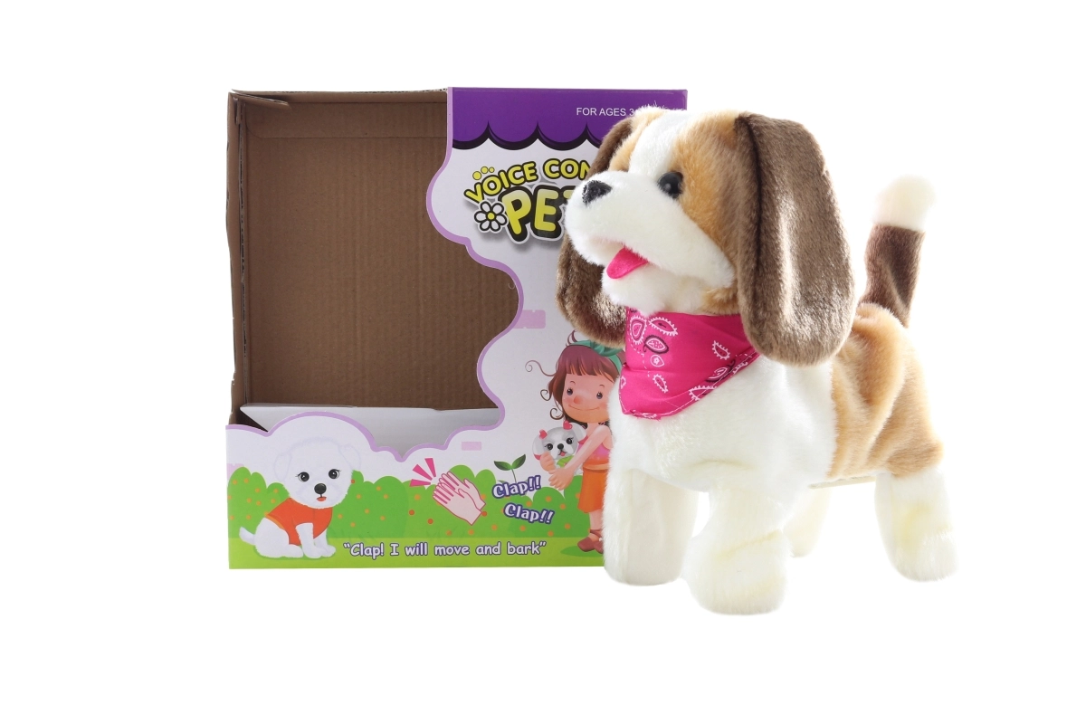 Šis pliušinis šuniukas, kurio matmenys apie 18 × 23 cm, yra puikus draugas mažiesiems gyvūnėlių mylėtojams. Dėl paprasto valdymo plojimu jis suteikia vaikams daug interaktyvios pramogos – į garso paskatą pradeda vaikščioti ir loti, taip žadindamas natūralų smalsumą ir motorikos raidą.