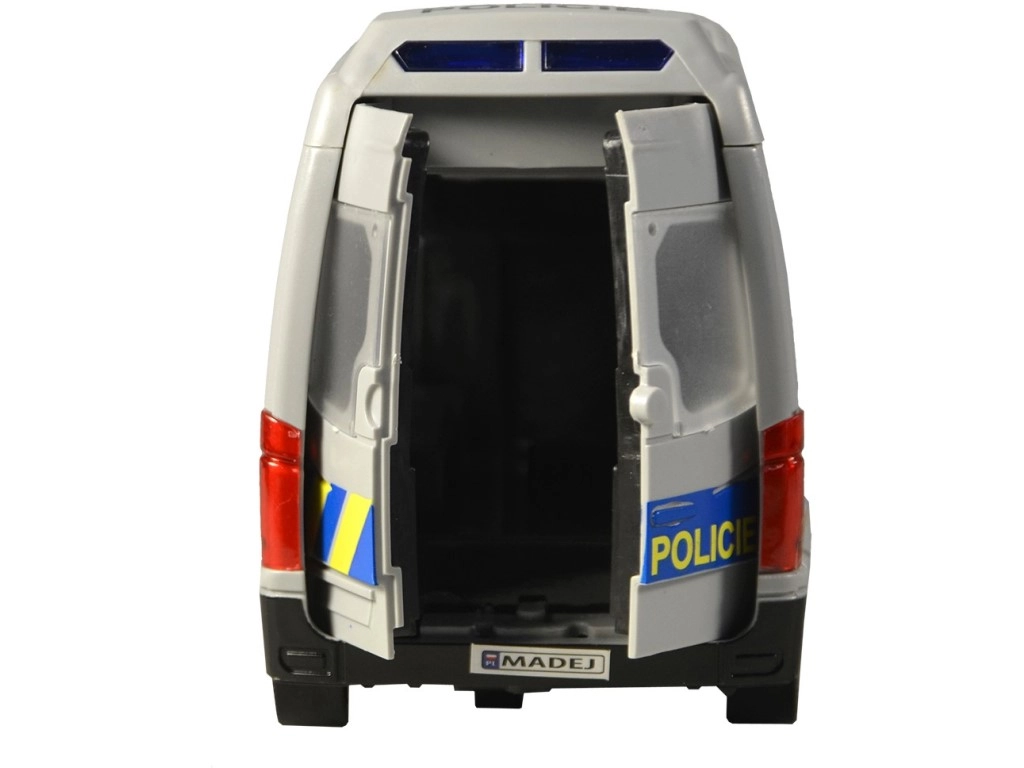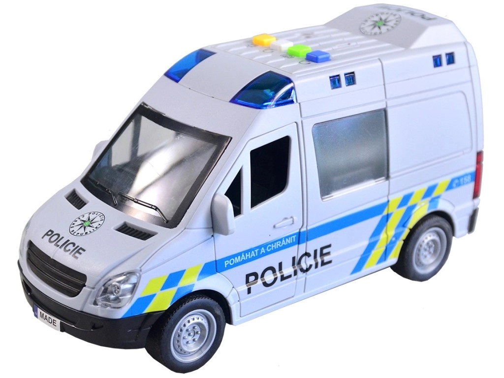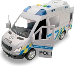 Šis policijos mikroautobusas pradžiugins visus vaikus, mėgstančius veiksmo istorijas ir gelbėjimo operacijas. Transporto priemonė važiuoja inerciniu mechanizmu, turi šviesos švyturėlį su mėlynomis įspėjamomis šviesomis ir atkuria autentiškus čekiškus įgulos ir dispečerio pranešimus, kaip per tikrą policijos operaciją. Atidaromos durys skatina realistišką žaidimą ir vaizduotės lavinimą.