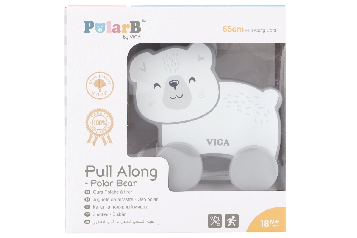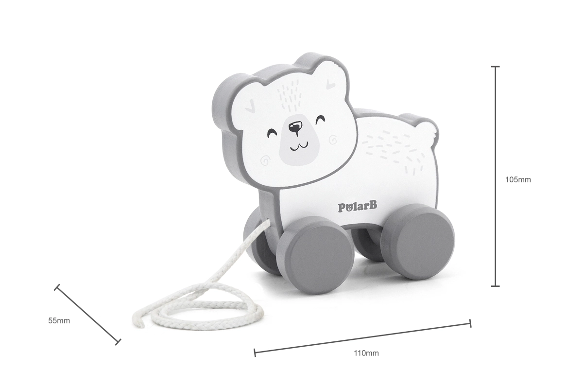 Atraskite tradicinio žaislo džiaugsmą su šiuo mediniu traukiamu žaislu Ledinis lokys. Jis sukurtas patogiam paėmimui ir traukimui, padeda lavinti rankų–akių koordinaciją ir smulkiąją motoriką vaikams nuo 18 mėnesių.