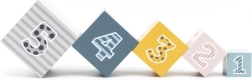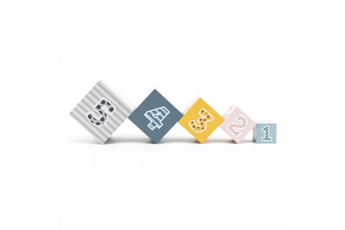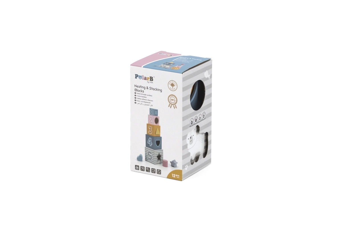 • Kiekviena kaladėlė turi skirtingus piešinius: skaičiai (nuo 1 iki 5), mieli PolarB kolekcijos gyvūnėliai ir įvairūs vaizdai, atitinkantys ant kaladėlės nurodytą skaičių