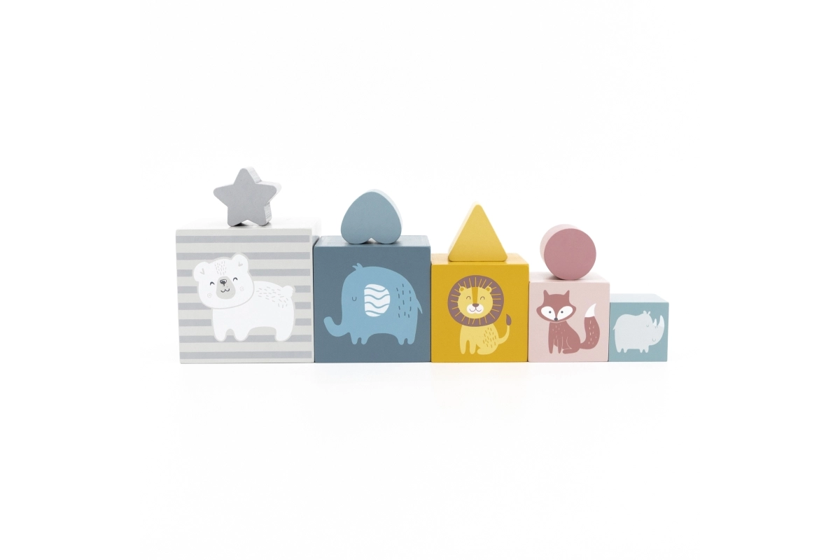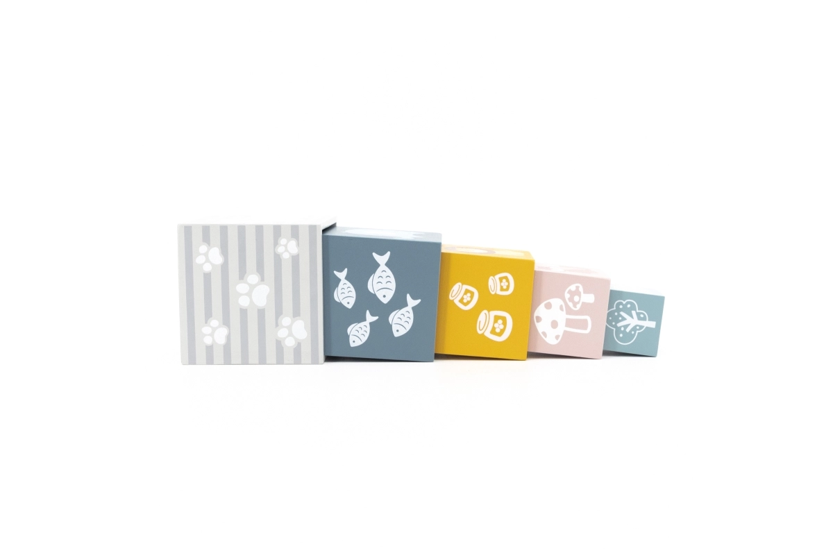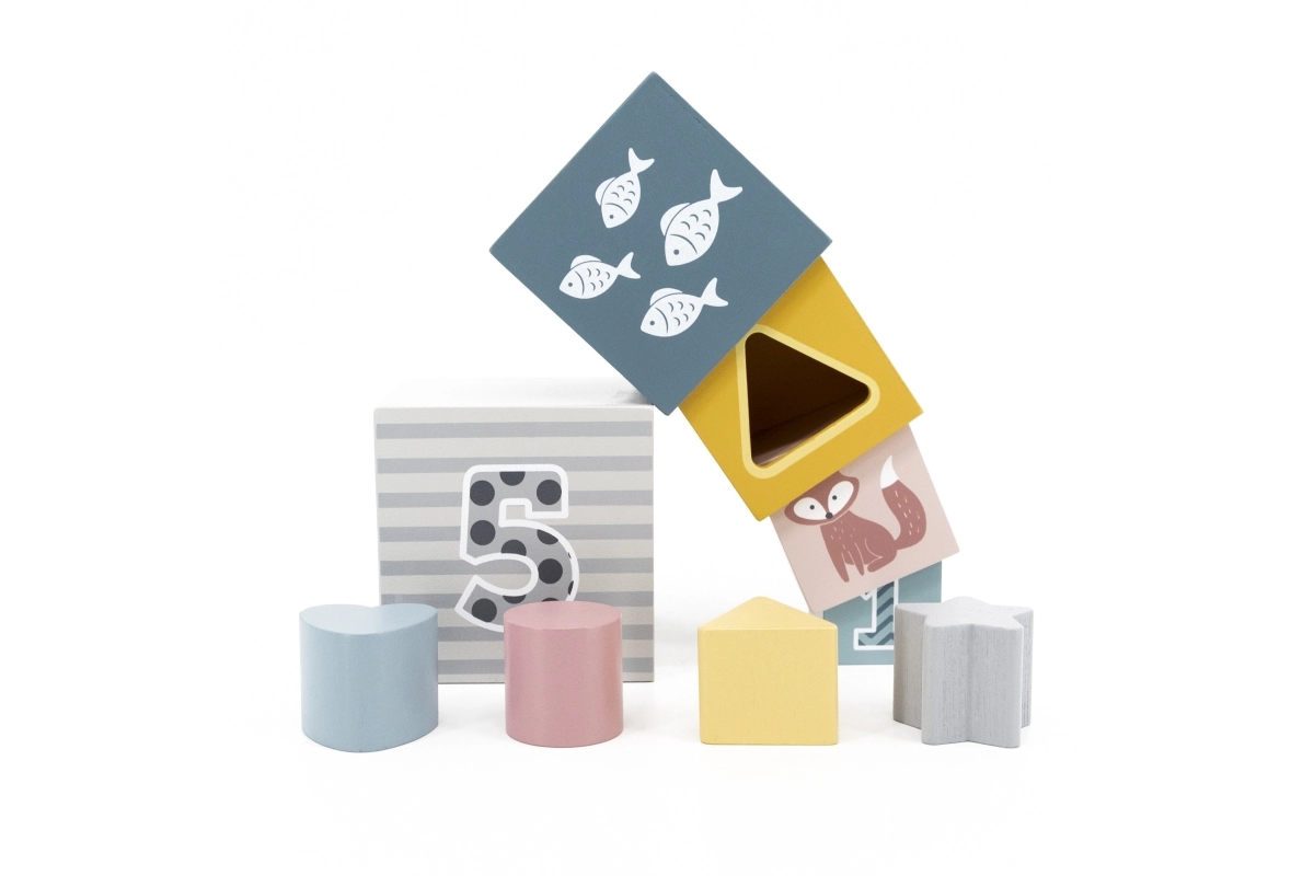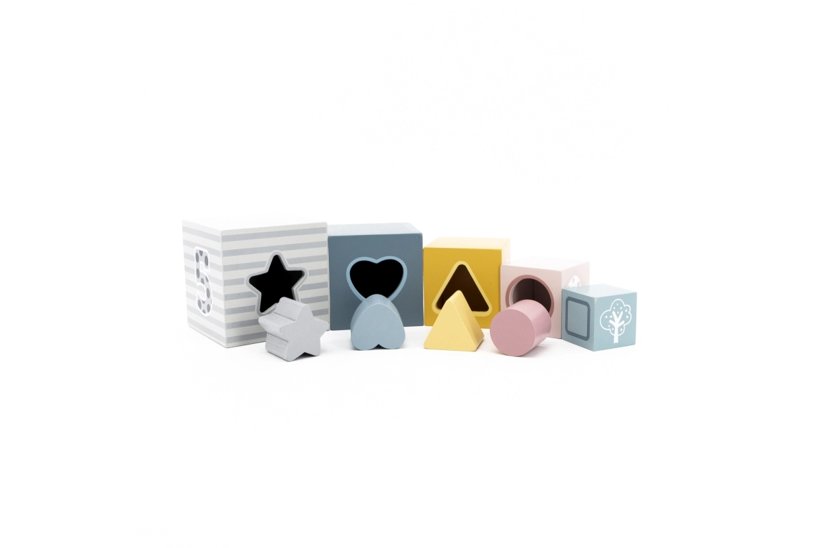• 5 skirtingo dydžio dėžutės ir 4 geometriniai blokeliai