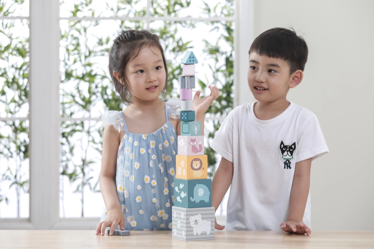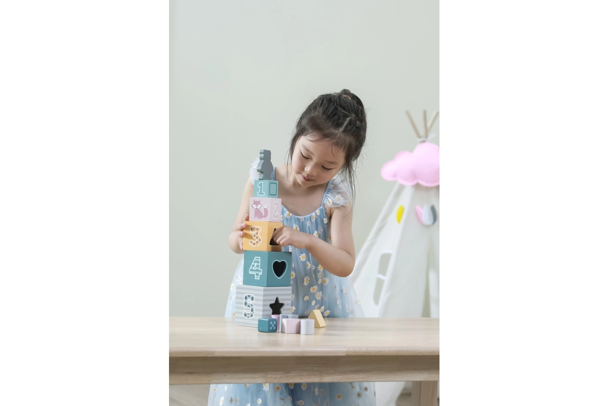 Bokštų kaladėlės siūlo interaktyvų būdą lavinti vaikų vaizduotę ir loginį mąstymą.