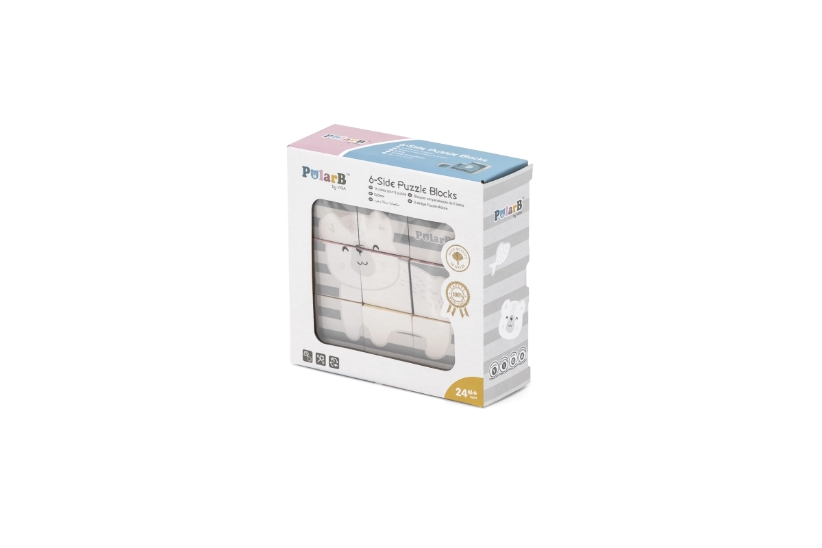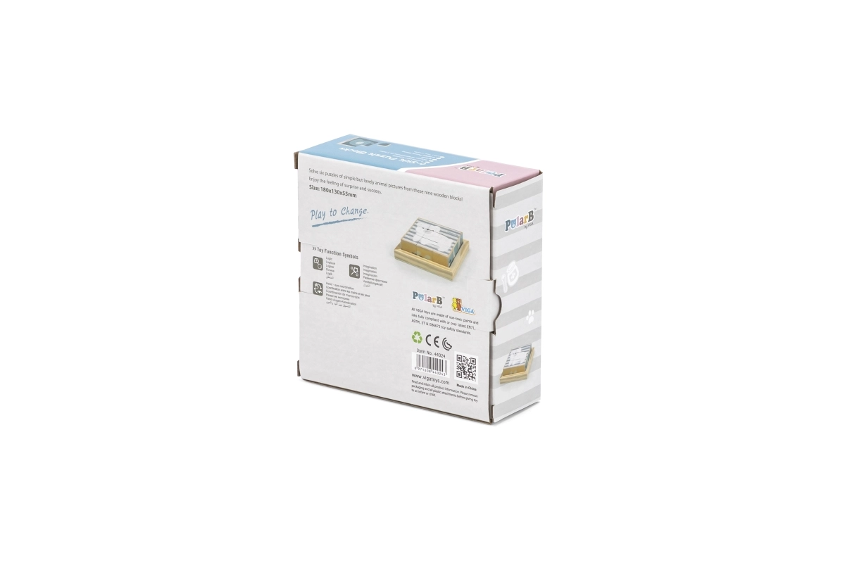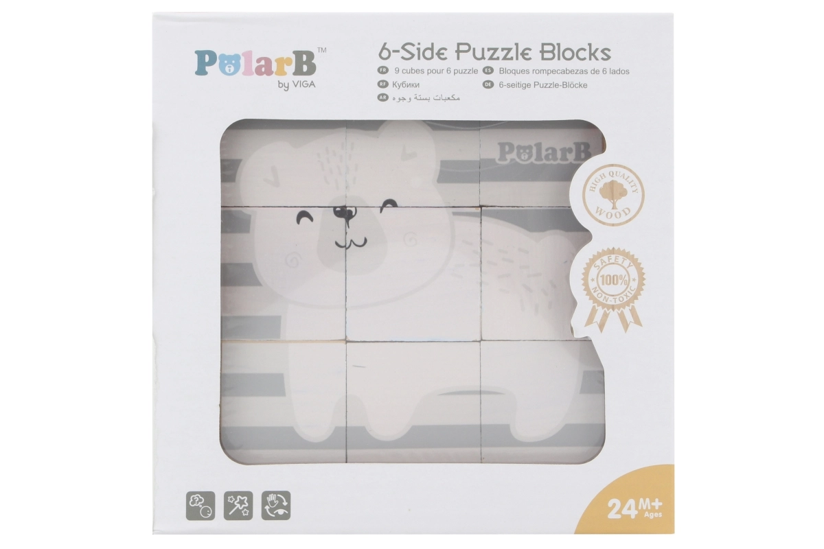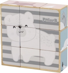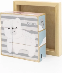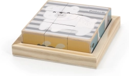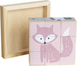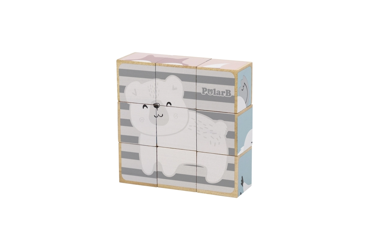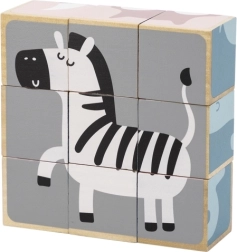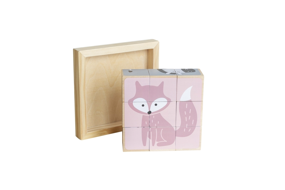 Atraskite laikui nepavaldų medinį žaislą, kuris ir džiugina, ir moko. Iš 9 kubelių sudėsite iš viso 6 skirtingus gyvūnėlių motyvus – pavyzdžiui, meškutį, lapę, koalą, zebrą ar ežiuką. Kiekviena kubelio pusė priklauso kitam paveikslėliui, todėl vaikai lavins dėmesį, kantrybę ir erdvinį mąstymą.