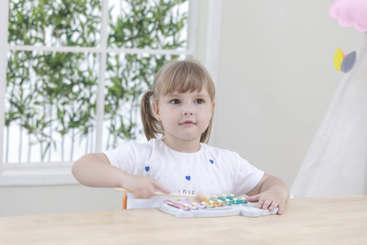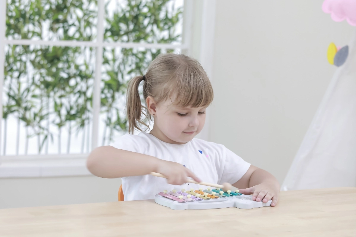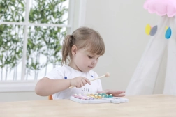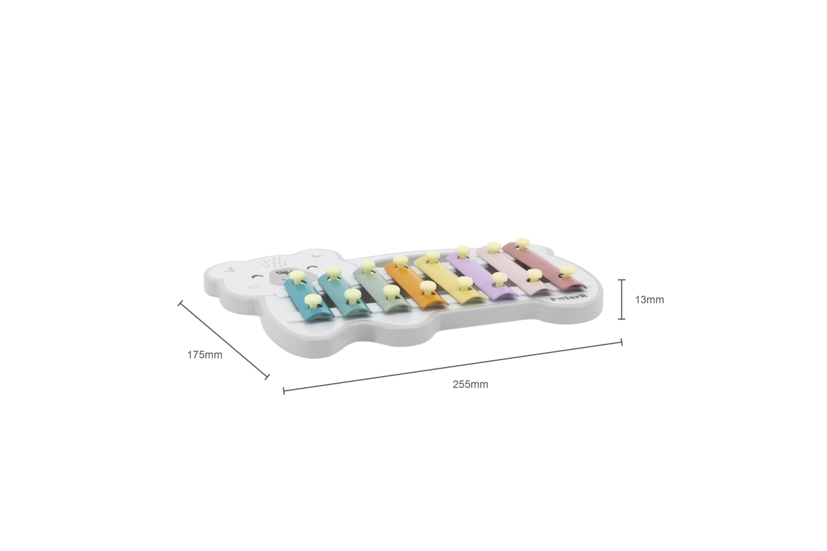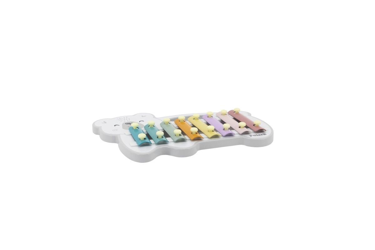 Aštuoni pastelinių spalvų klavišai motyvuoja vaikus tyrinėti garsus, ritmą ir paprastas melodijas. Puikiai tinka lavinti klausą ir kūrybiškumą.