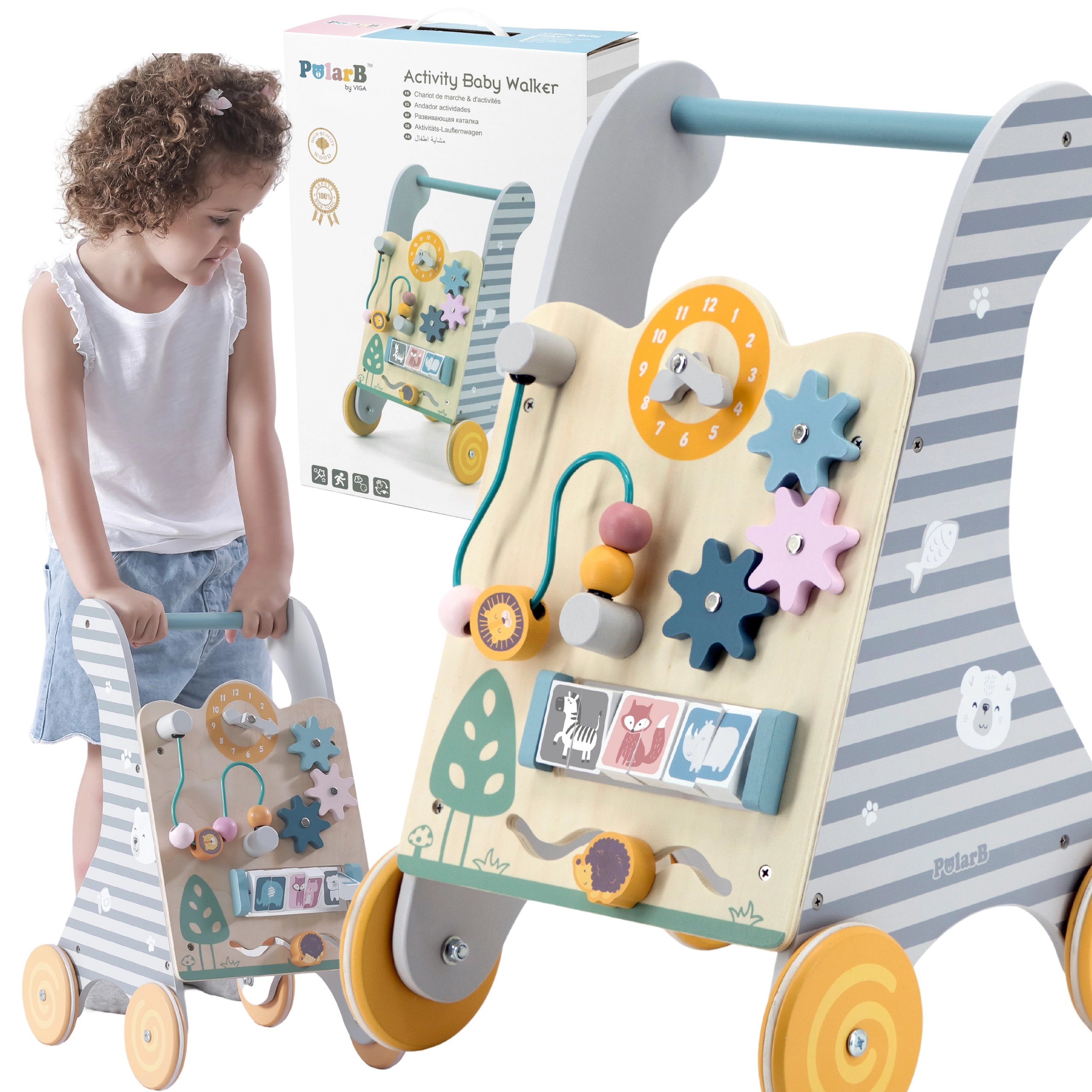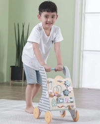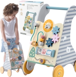Medinis mokomasis stumdukas iš Viga Toys yra puiki priemonė lavinti motorinius ir kognityvinius įgūdžius vaikams nuo 18 mėn. Daugiafunkcis dizainas sujungia stabilų stumduką ir interaktyvią mokomąją panelę, kuri moko atpažinti formas ir spalvas. Įvairūs elementai, tokie kaip krumpliaračiai, takeliai su gyvūnais ir šoniniai skydeliai, išlaiko vaiko dėmesį ir suteikia pramogą.