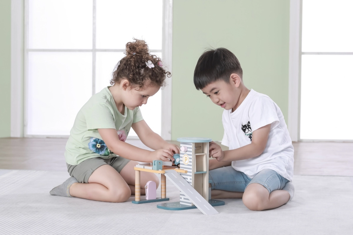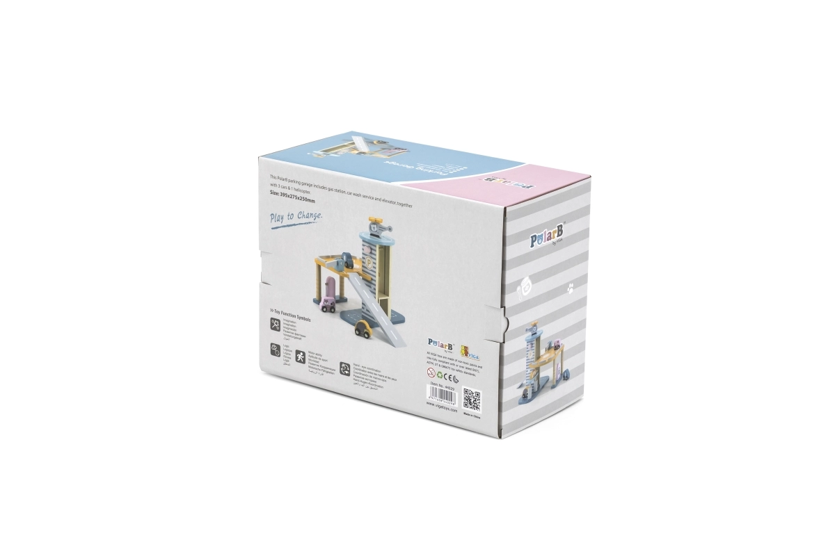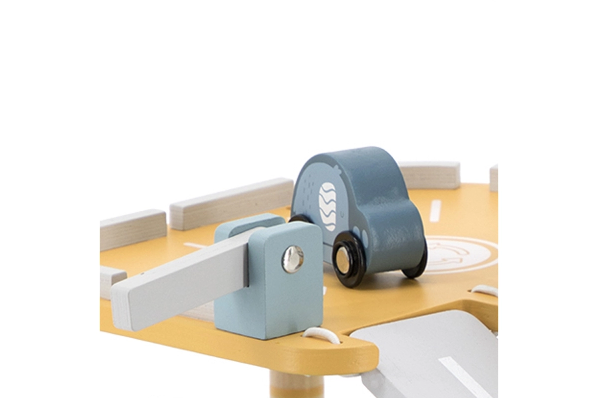 Medinis garažas su sraigtasparniu ir mašinėlėmis – puikus žaislas, kuris skatina vaikų kūrybiškumą ir smulkiosios motorikos lavinimą. Šis interaktyvus žaislas aprūpintas automobilių plovykla, degaline ir liftu. Rinkinyje yra trys mašinėlės ir vienas sraigtasparnis, viskas prislopintų spalvų, tinkančių bet kuriam vaikų kambariui.