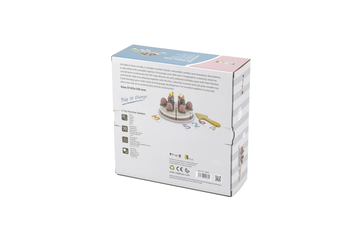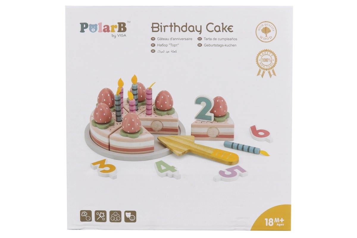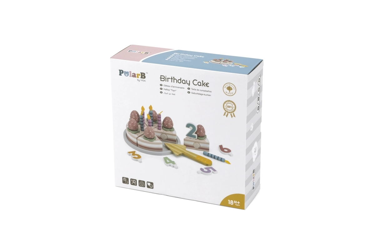 Leiskite vaikams džiaugtis švente kiekvieną dieną. Medinis gimtadienio tortas POLARB gali būti pjaustomas į 6 porcijas, dekoruojamas žvakutėmis ir braškytėmis, o patiekiamas pridedama mentele. Spalvingi skaitmenys skatina vaikus pažinti skaičius ir mokytis paprasto skaičiavimo, o realistiškas „šventės“ žaidimas ugdo socialinius įgūdžius.