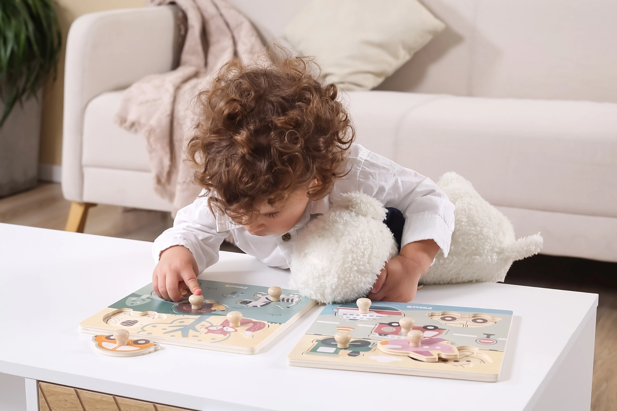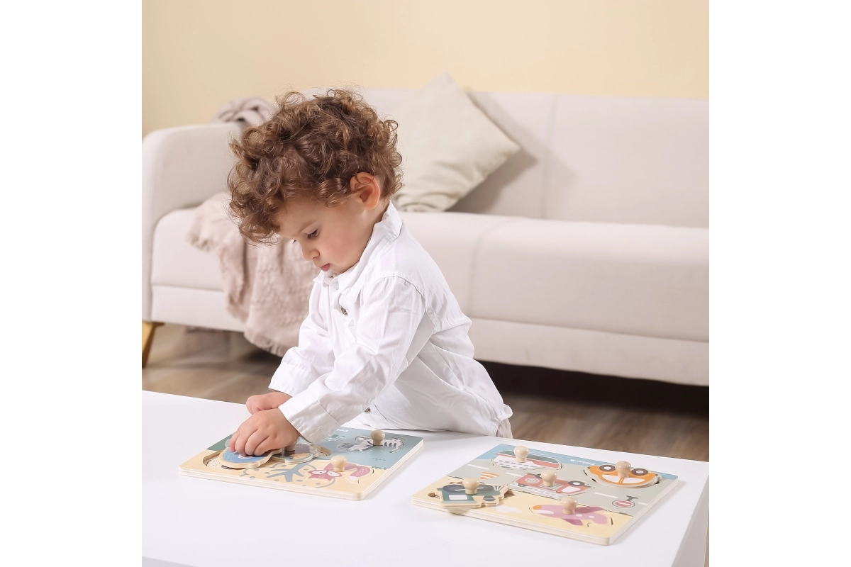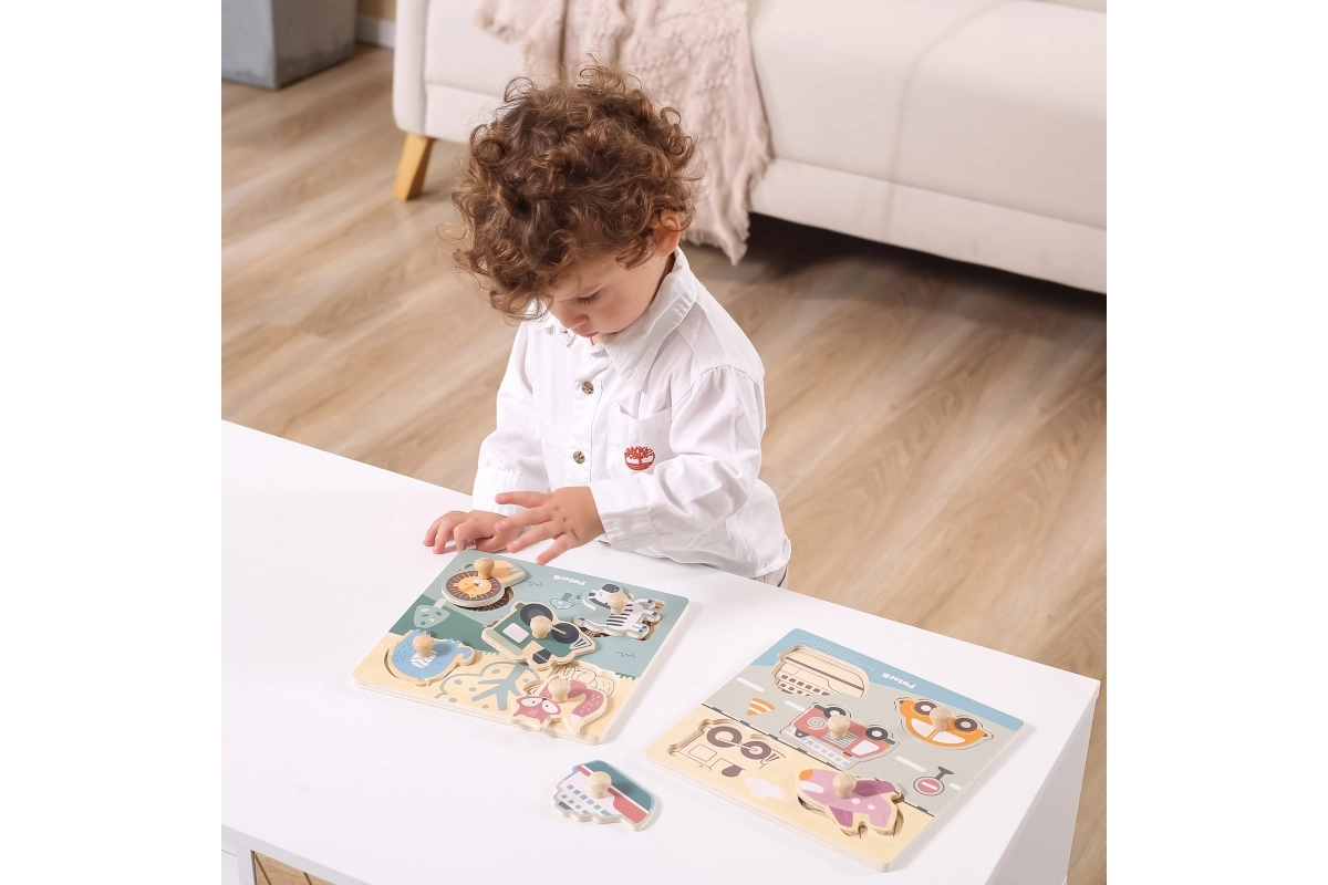 Žaislas pagamintas iš patvaraus medžio ir nudažytas netoksiškais dažais. Nėra aštrių briaunų, todėl puikiai tinka pirmajai pažinčiai su dėlionėmis. Dėliodami vaikai lavina loginį mąstymą, pažintinius įgūdžius ir įgyja daugiau pasitikėjimo smulkiosios motorikos judesiais.