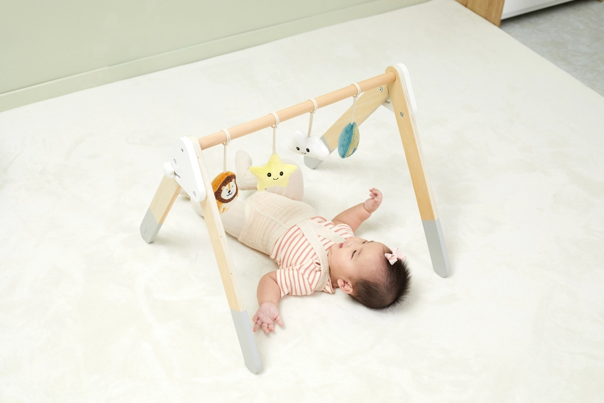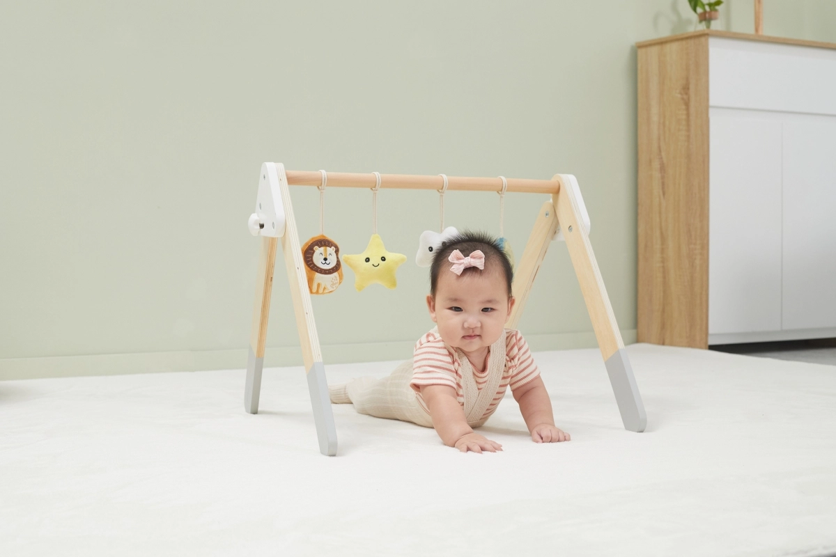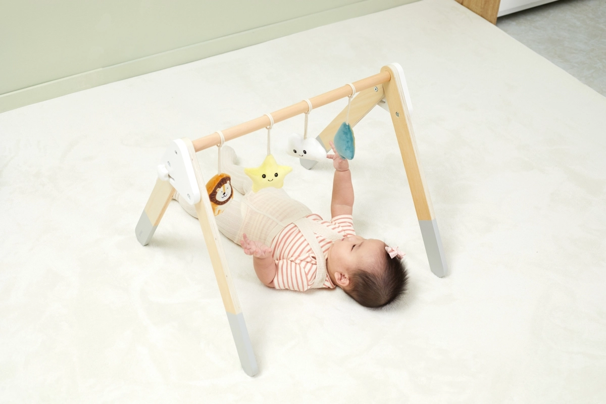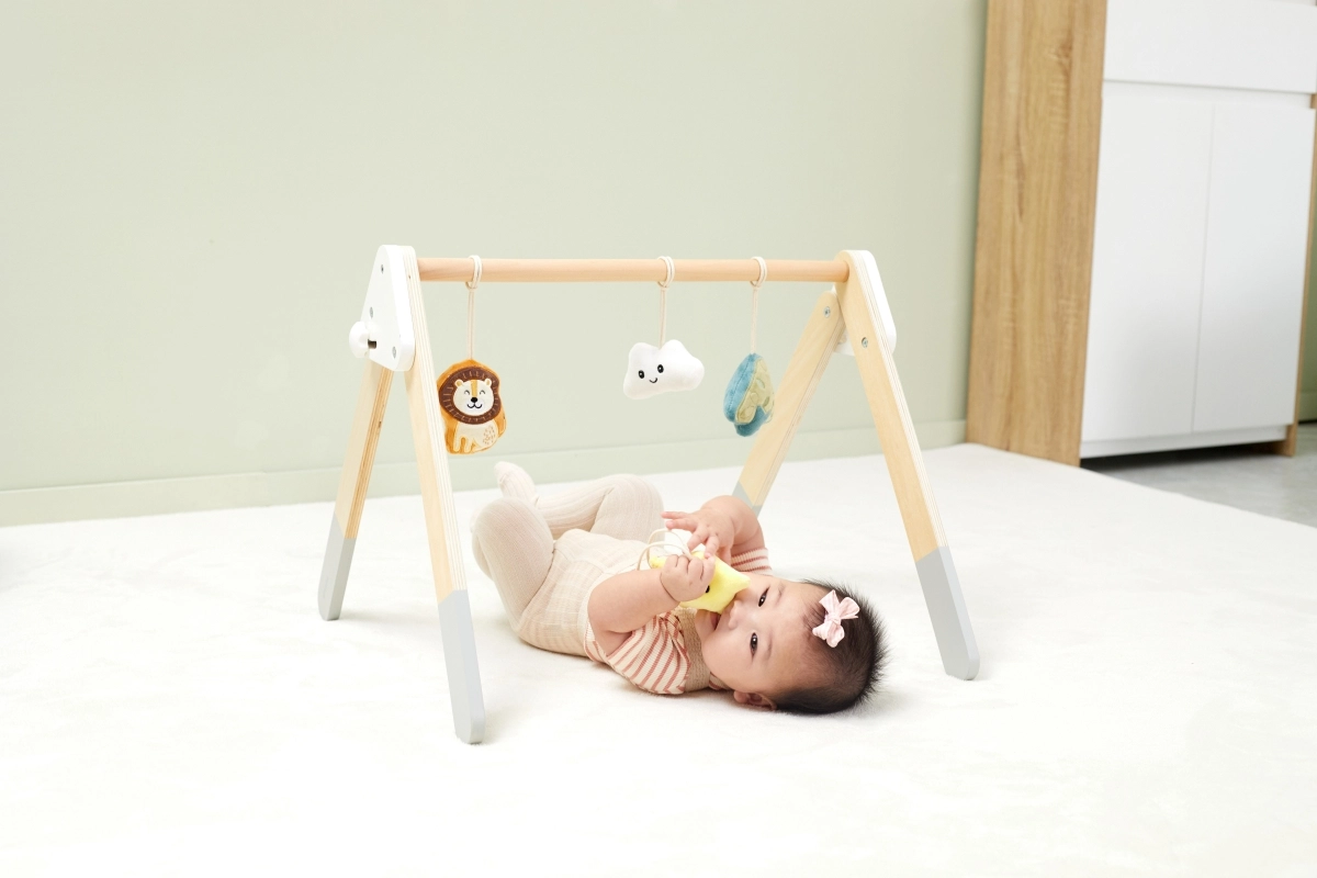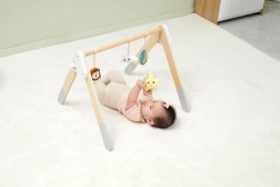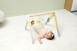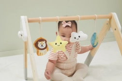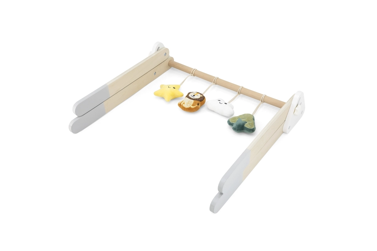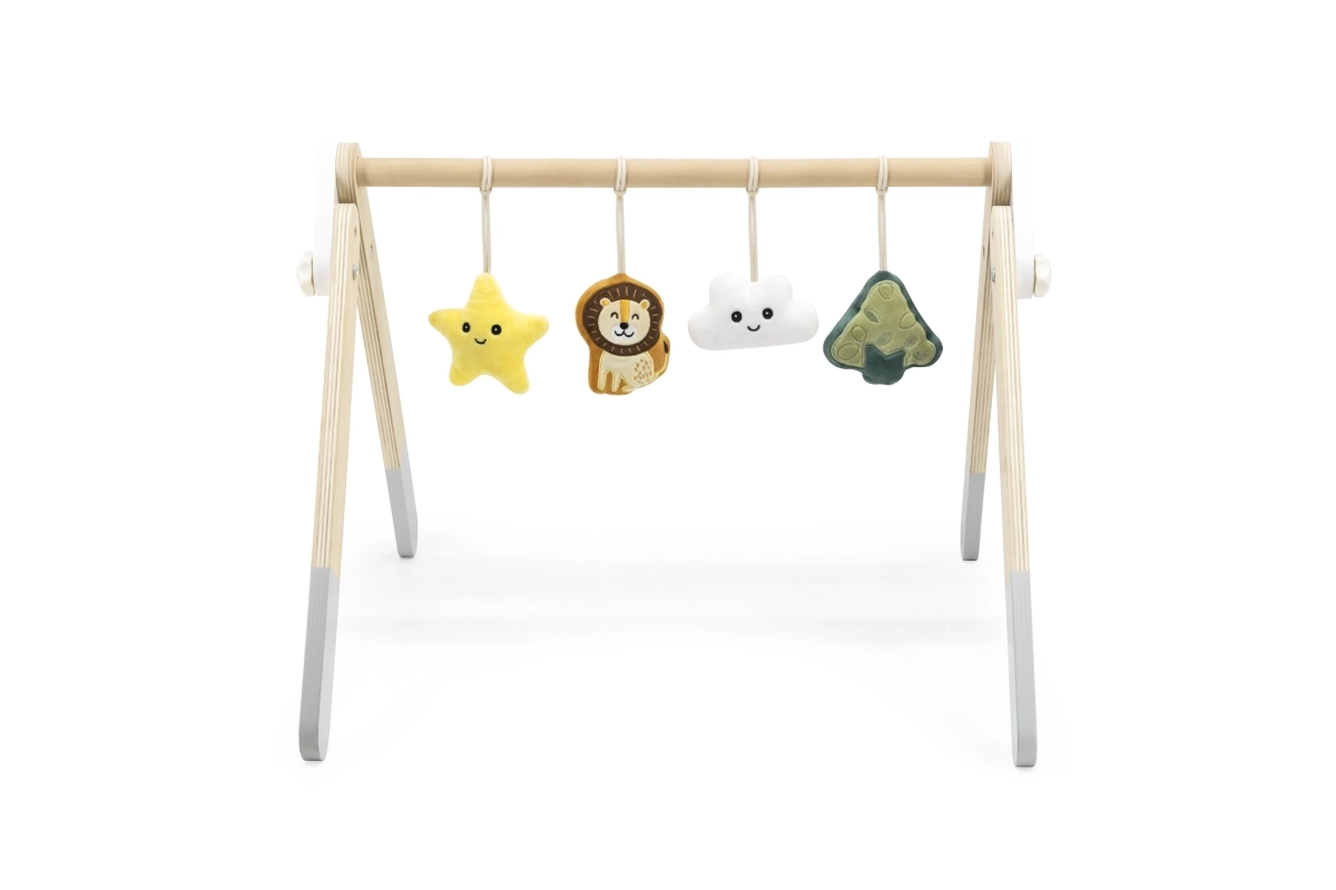 Šis kokybiškas medinis kūdikių žaidimų stovelis tinka jau nuo 1 mėnesio. Natūrali išvaizda ir malonios spalvos dera prie bet kokio interjero. Kabinami žaislai patraukia kūdikio dėmesį garsais ir skirtingomis tekstūromis, kurios stimuliuoja regą, klausą ir lytėjimą.
