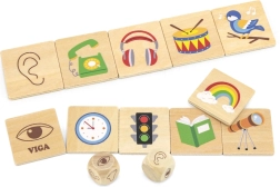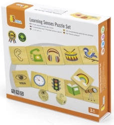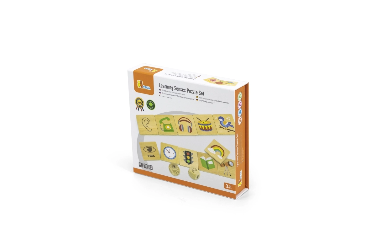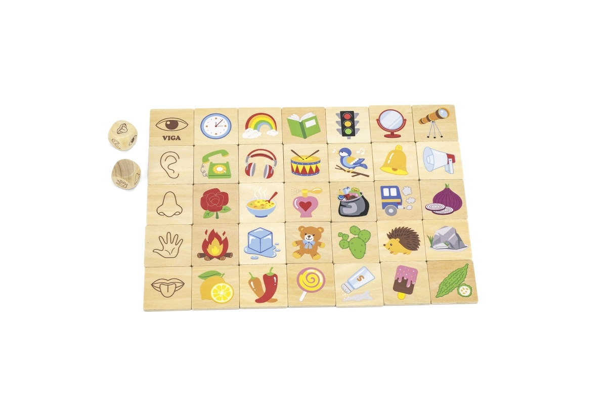 VIGA edukacinis žaidimas – medinės dėlionės siūlo idealų būdą vaikams lavinti mąstymą ir koordinaciją. Užduotis – priskirti daiktus pasirinktiems pojūčiams, įtraukiant įvairius kasdienius objektus.