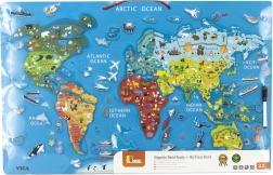 Su šia 2-in-1 edukacine lenta vaikai ne tik piešia, bet ir atranda pasaulį per magnetines dalis, kurios vaizduoja žemynus, transporto priemones ir jūrų gyvūnus. Žemėlapis yra anglų kalba, todėl padeda mokytis anglų kalbos žaidžiant. Lentoje yra 106 dalys ir ji yra puiki priemonė įvairiems gebėjimams lavinti.