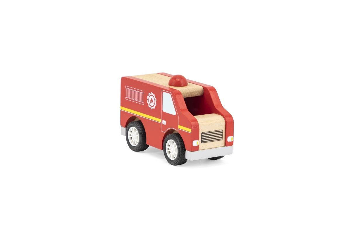 Šis gaisrinės automobilis pagamintas iš aukštos kokybės medžio, kuris užtikrina didelį patvarumą ir saugumą jūsų vaikams.