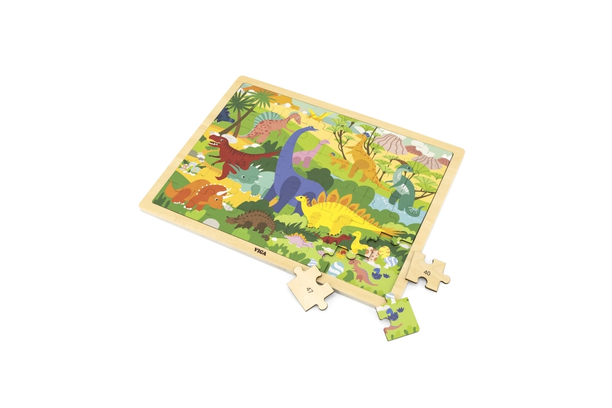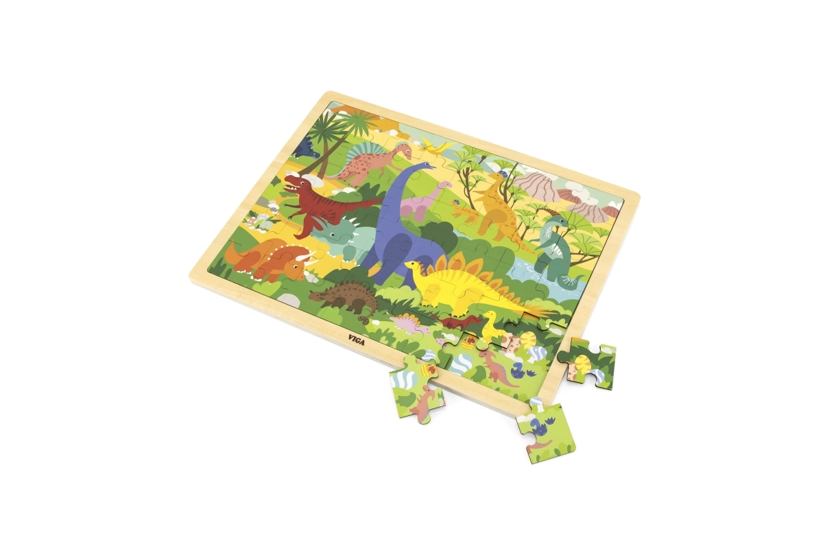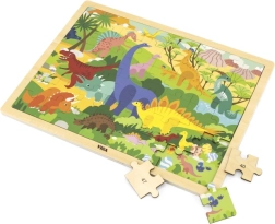 Padovanokite vaikams smagų ir ugdomąjį dėliojimą su medine dėlione dinozaurų motyvu. Dėl 48 dalių tai puikus pirmasis „didesnis“ galvosūkis, kuris palaipsniui lavina įgūdžius ir mažųjų statytojų pasitikėjimą savimi. Dalys yra tvirtos, patogiai laikosi rankoje ir jas patogu dėlioti ant medinės lentos su rėmeliu.