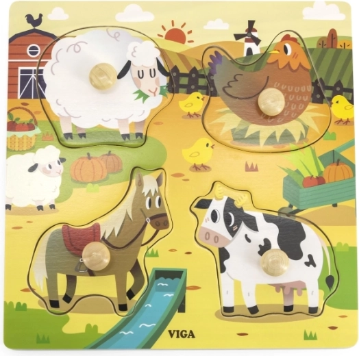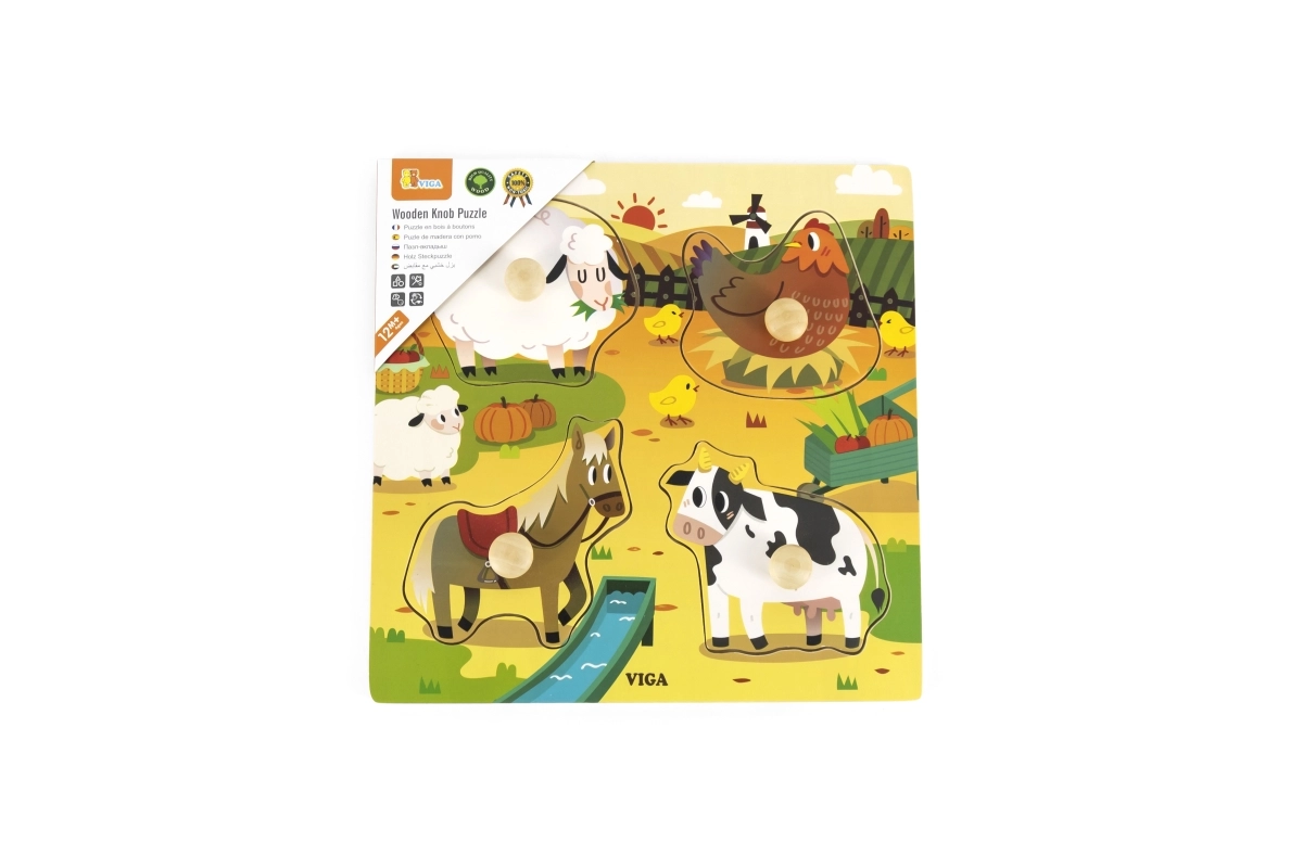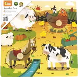Ši medinė dėlionė-įmautė – puikus pasirinkimas tėvams, norintiems padėti lavinti vaiko motorinius įgūdžius. Joje rasite gražias ūkio gyvūnų iliustracijas – avių, vištų, arklių ir karvių. Kiekviena detalė turi patogią rankenėlę, leidžiančią mažoms rankutėms lengvai paimti ir valdyti detales. Dėlionė sukurta atsižvelgiant į saugumą ir patvarumą, todėl idealiai tinka vaikams nuo 12 mėnesių.