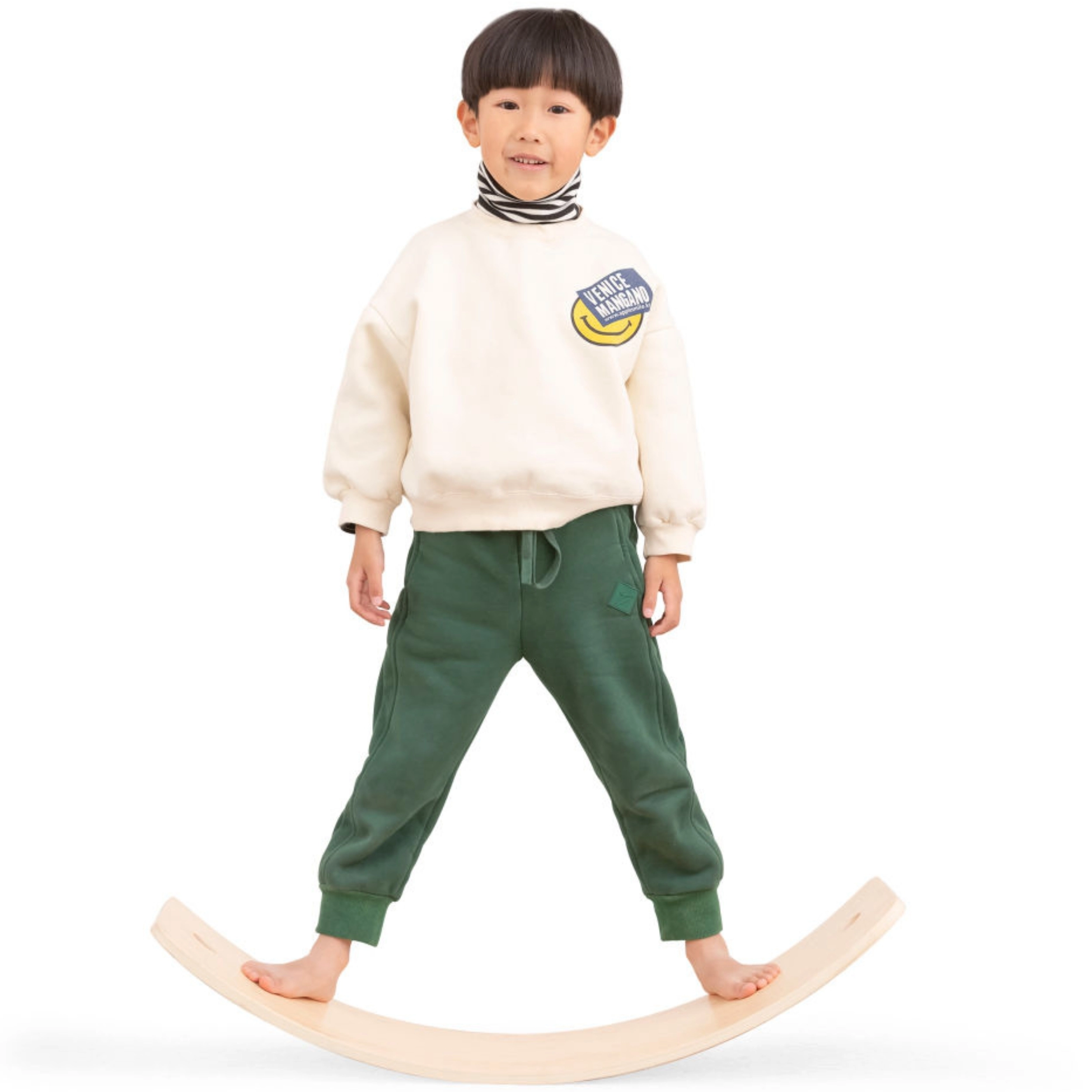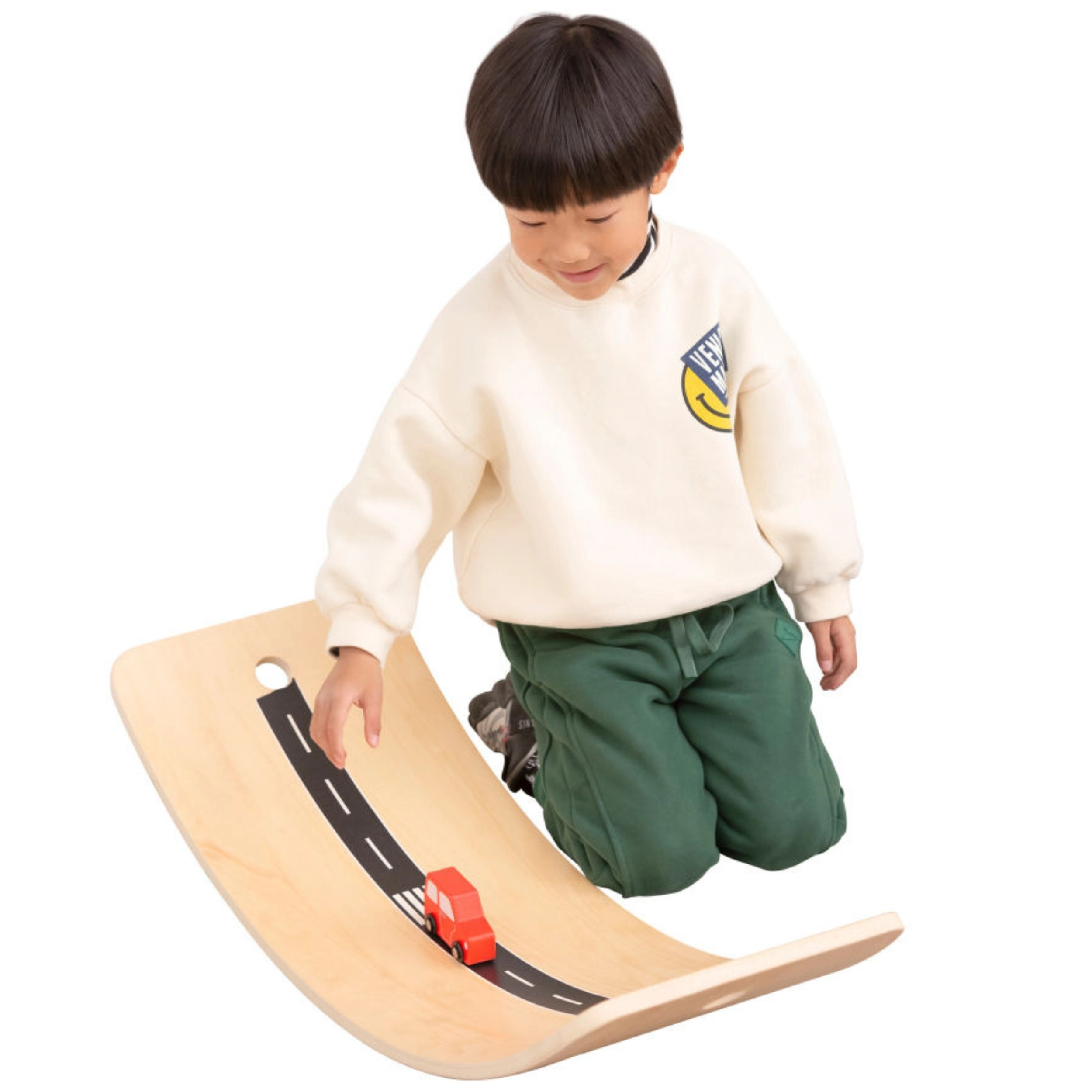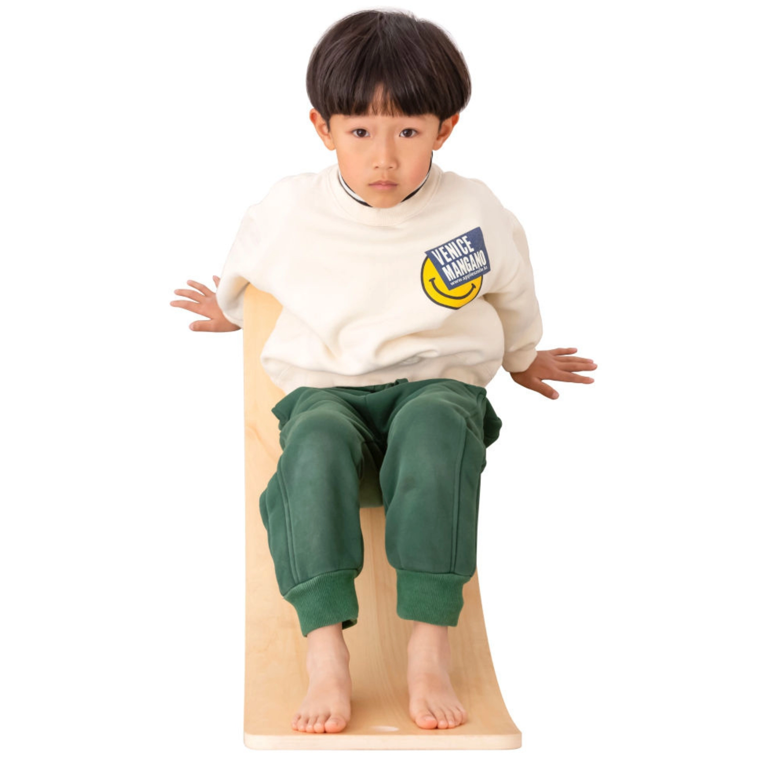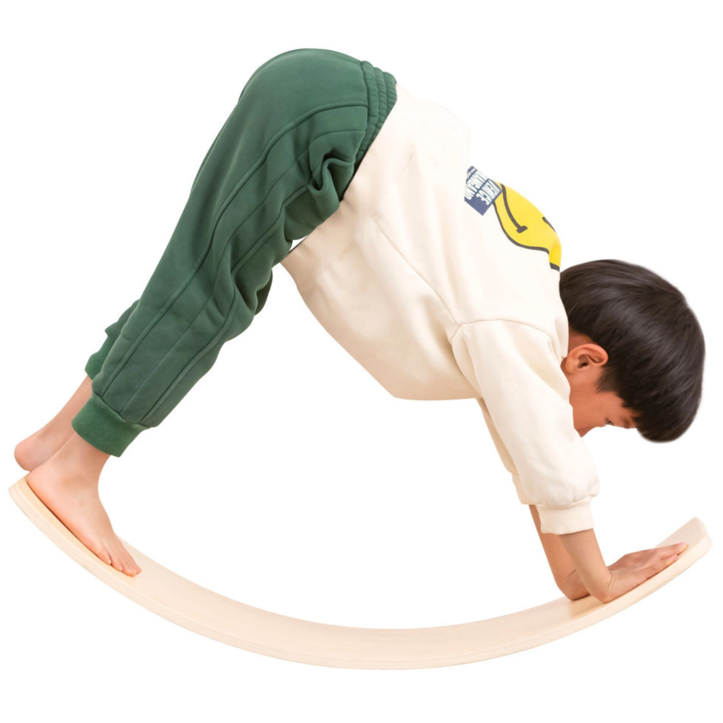 Išlenkta lentos forma skatina vaikus suptis, stovėti ir išbandyti pozas, taip lavinant koordinaciją, stabilumą ir kūno centrą saugiu ir smagiu būdu.