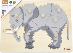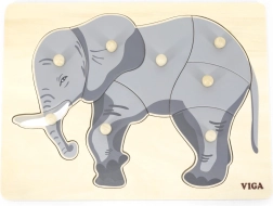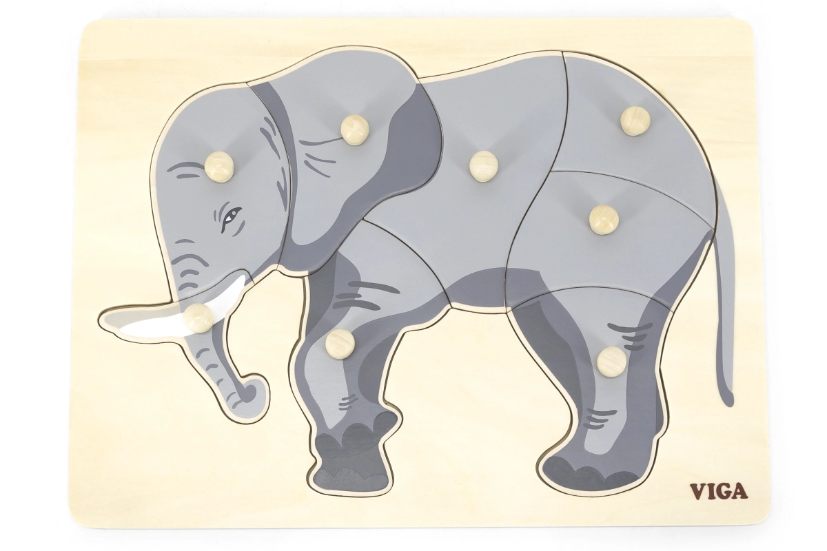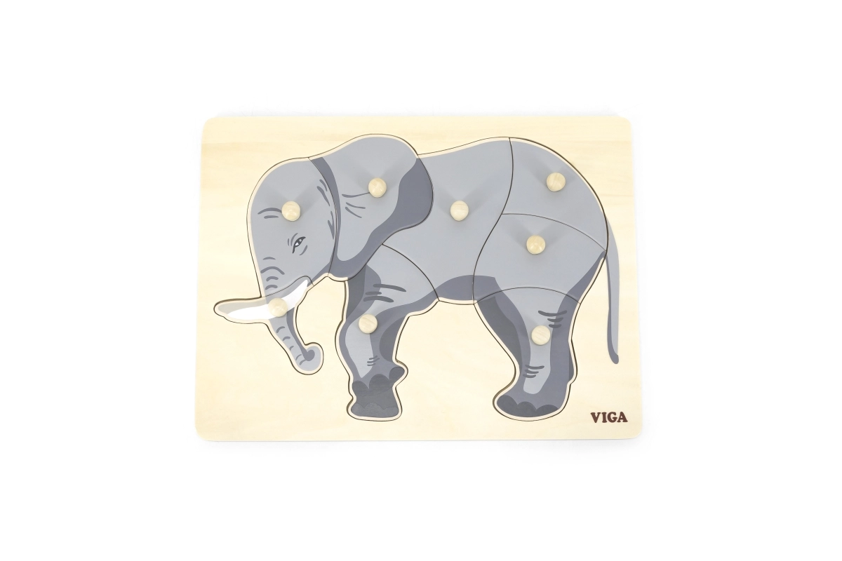 Šis gražus medinis įdėklas su dramblio motyvu idealiai tinka jūsų vaikų kognityviniams įgūdžiams ir smulkiajai motorikai lavinti. Visos detalės turi rankenėles, kurios leidžia vaikams lengvai jomis manipuliuoti.