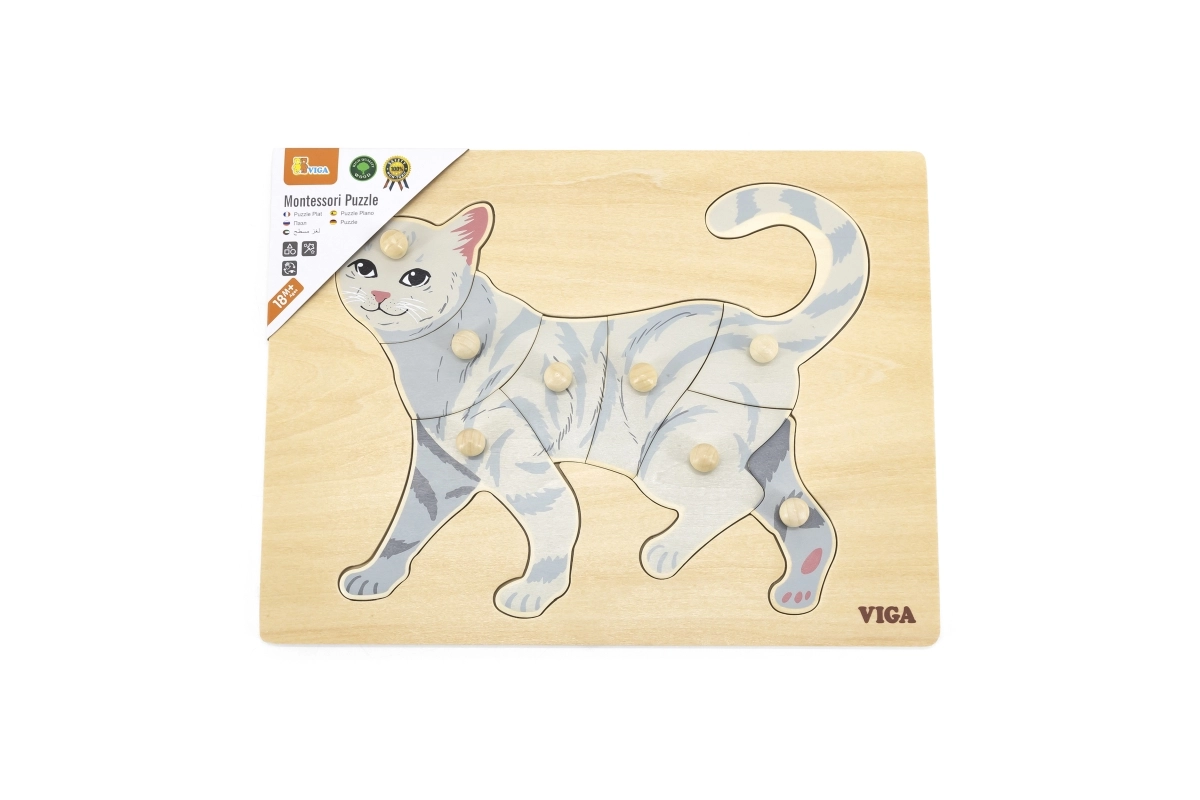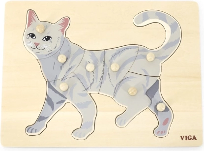 Įkvėpta montessori metodo: vaikai natūraliai mokosi pažinti gyvūnus, lavina lytėjimą ir judesių koordinaciją, stiprina erdvinį mąstymą. Kokybiškas medinis atlikimas ir aiškus katės motyvas skatina kartotinį žaidimą ir susikaupimą.