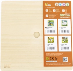 - Komplektacija: medinė lentelė (rėmelis) + 9 dėlionės dalys.